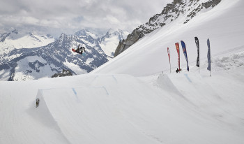 The coolest tricks and highest air time are reached at straight jumps, a type of kicker. The larger ones among them are also called big air. Often, several of them are placed in a row as a kicker line.