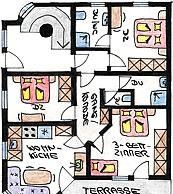 Plan kleine Wohnung für 5 Personen + 2 Zusatzbetten