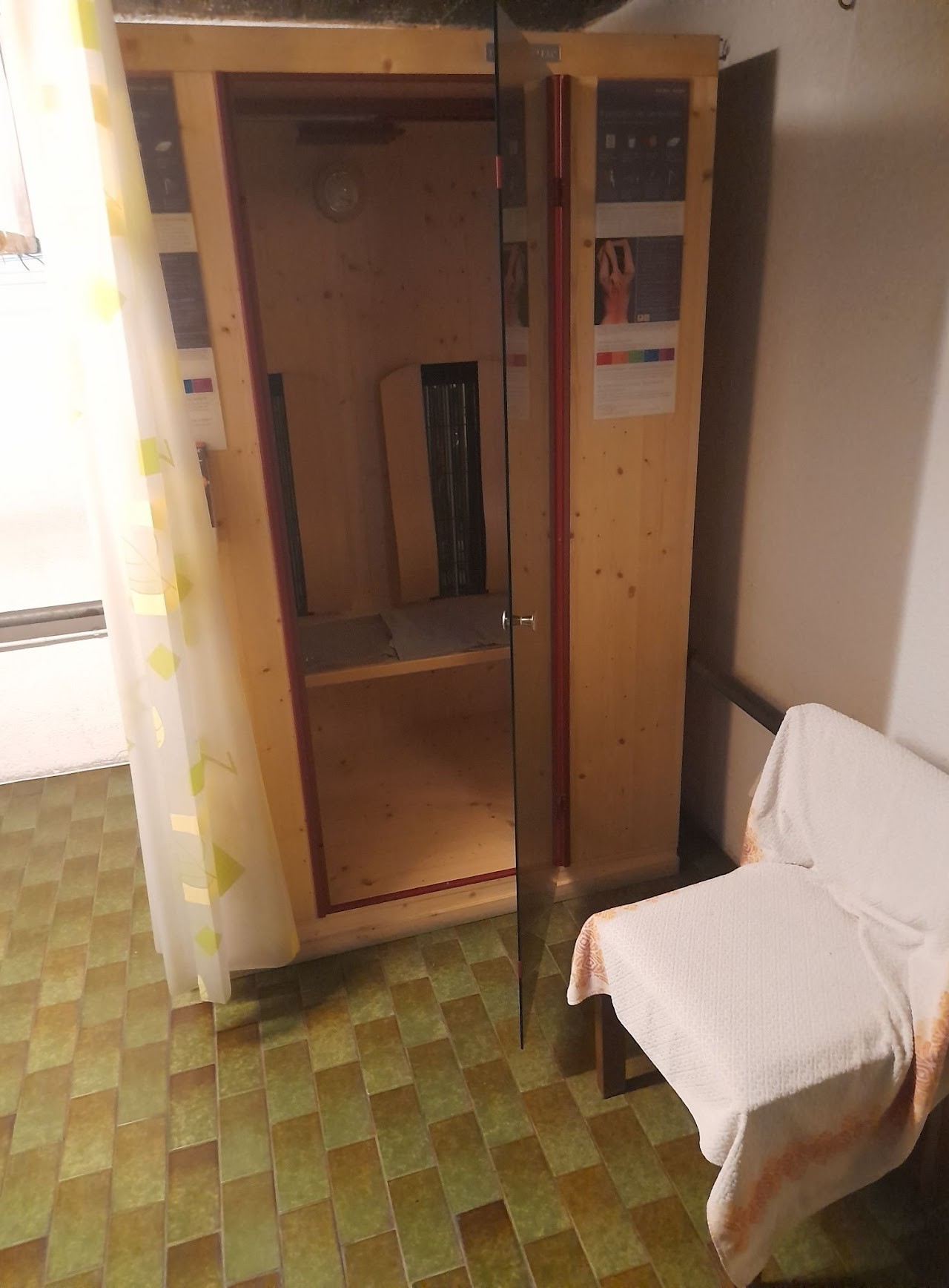 You will also find a ski boot dryer and an infrared heat cabin there.