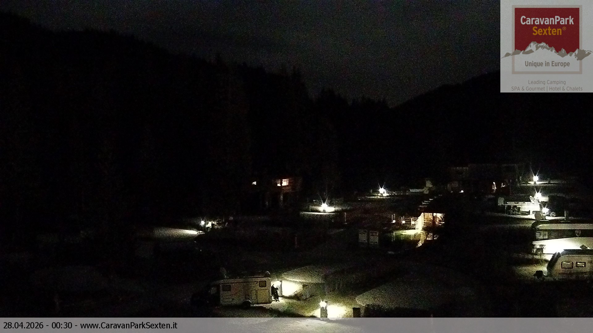 Archived webcam image showing Caravanpark of Sexten - Moos on 28 Apr 2026 at 02:00 01:00