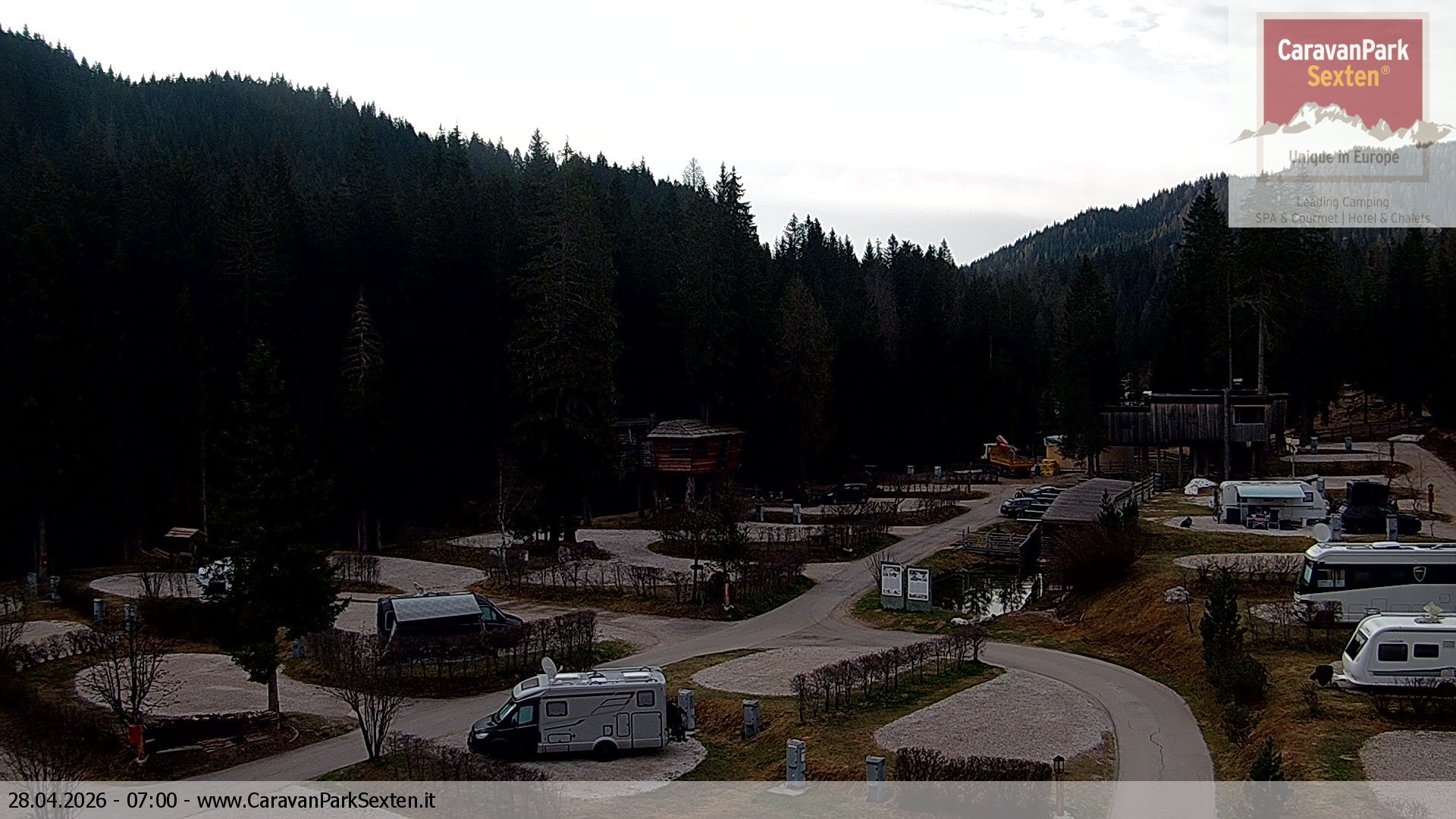 Archived webcam image showing Caravanpark of Sexten - Moos on 28 Apr 2026 at 07:00 06:00