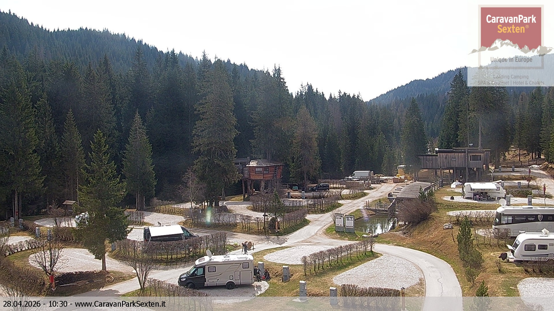 Archived webcam image showing Caravanpark of Sexten - Moos on 28 Apr 2026 at 10:00 09:00