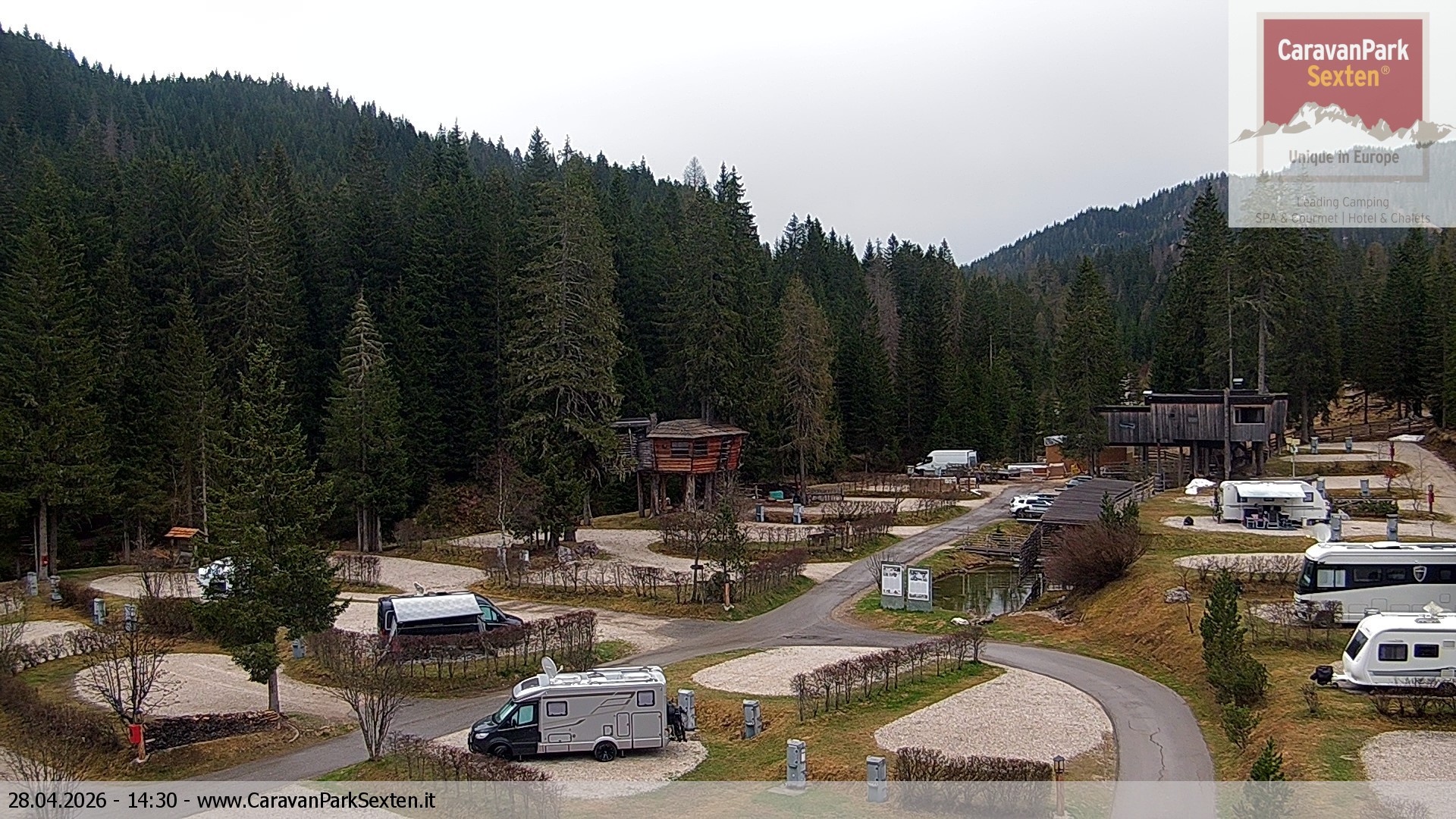Archived webcam image showing Caravanpark of Sexten - Moos on 28 Apr 2026 at 14:00 Latest