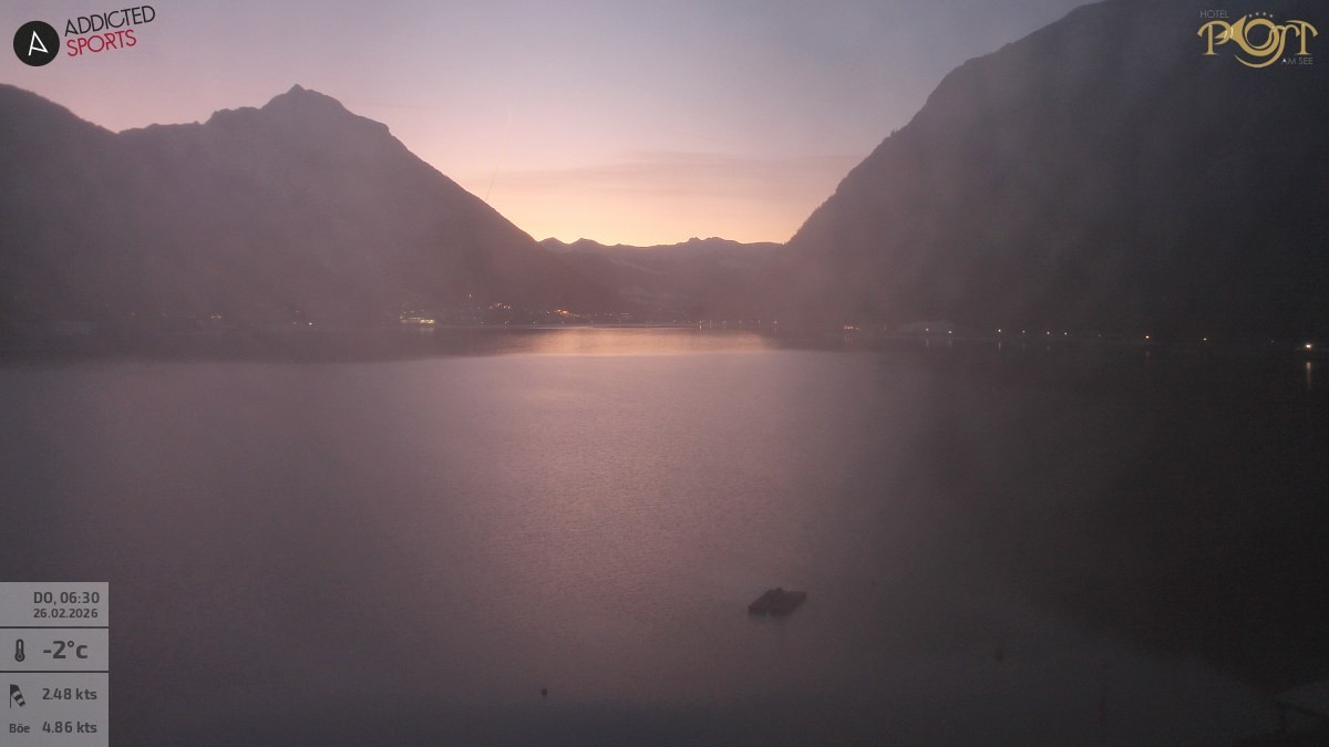 Archived webcam image showing Pertisau: Lakeview Hotel Post on 26 Feb 2026 at 06:54 05:00