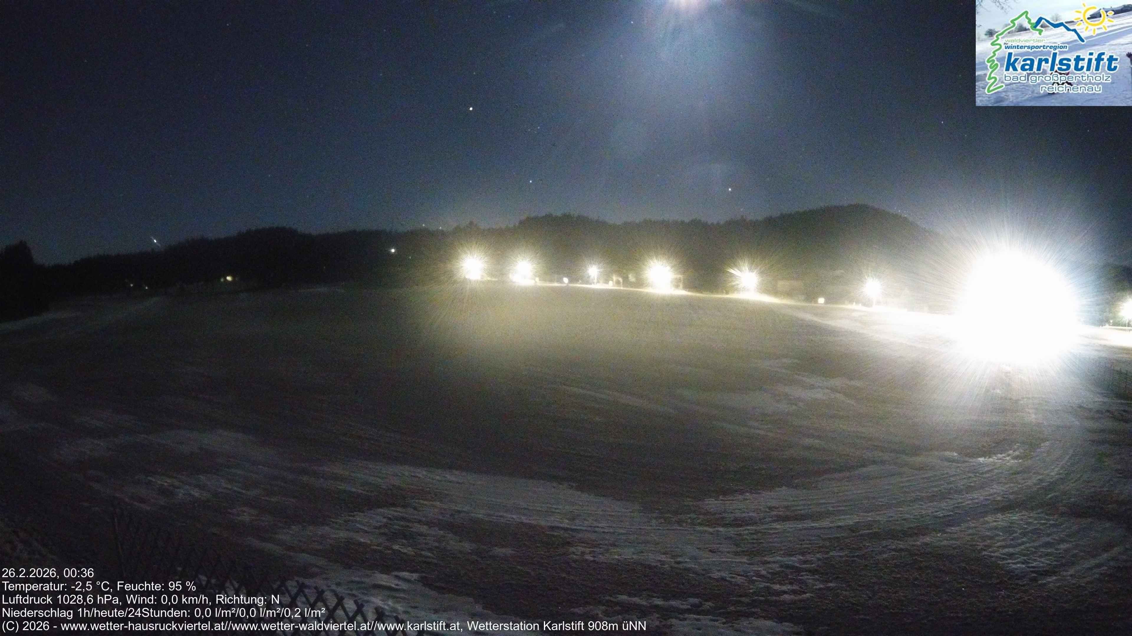Archiviertes Webcam Bild: Karlstift - Langlaufloipe am 26 Feb 2026 um 02:09 Uhr 1:00 AM