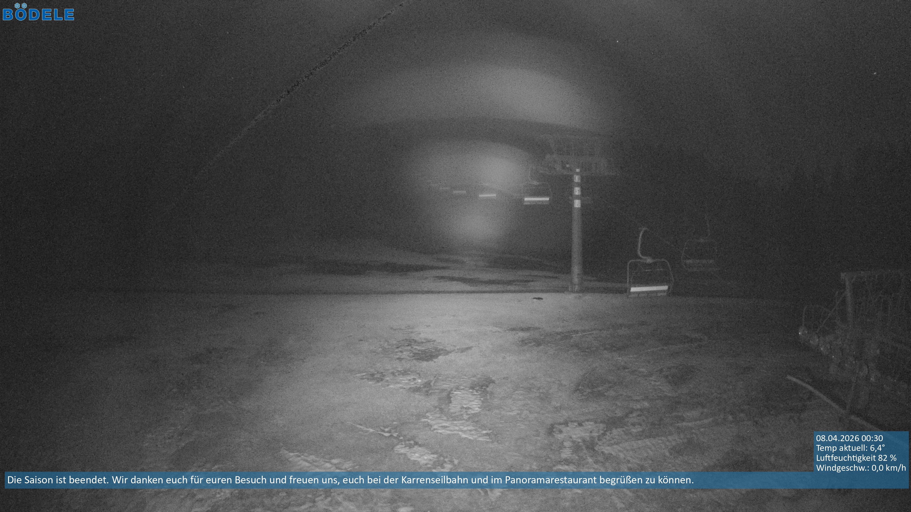 Archived webcam image showing Chair Lift Lank in Bödele ski resort on 8 Apr 2026 at 00:31 23:00