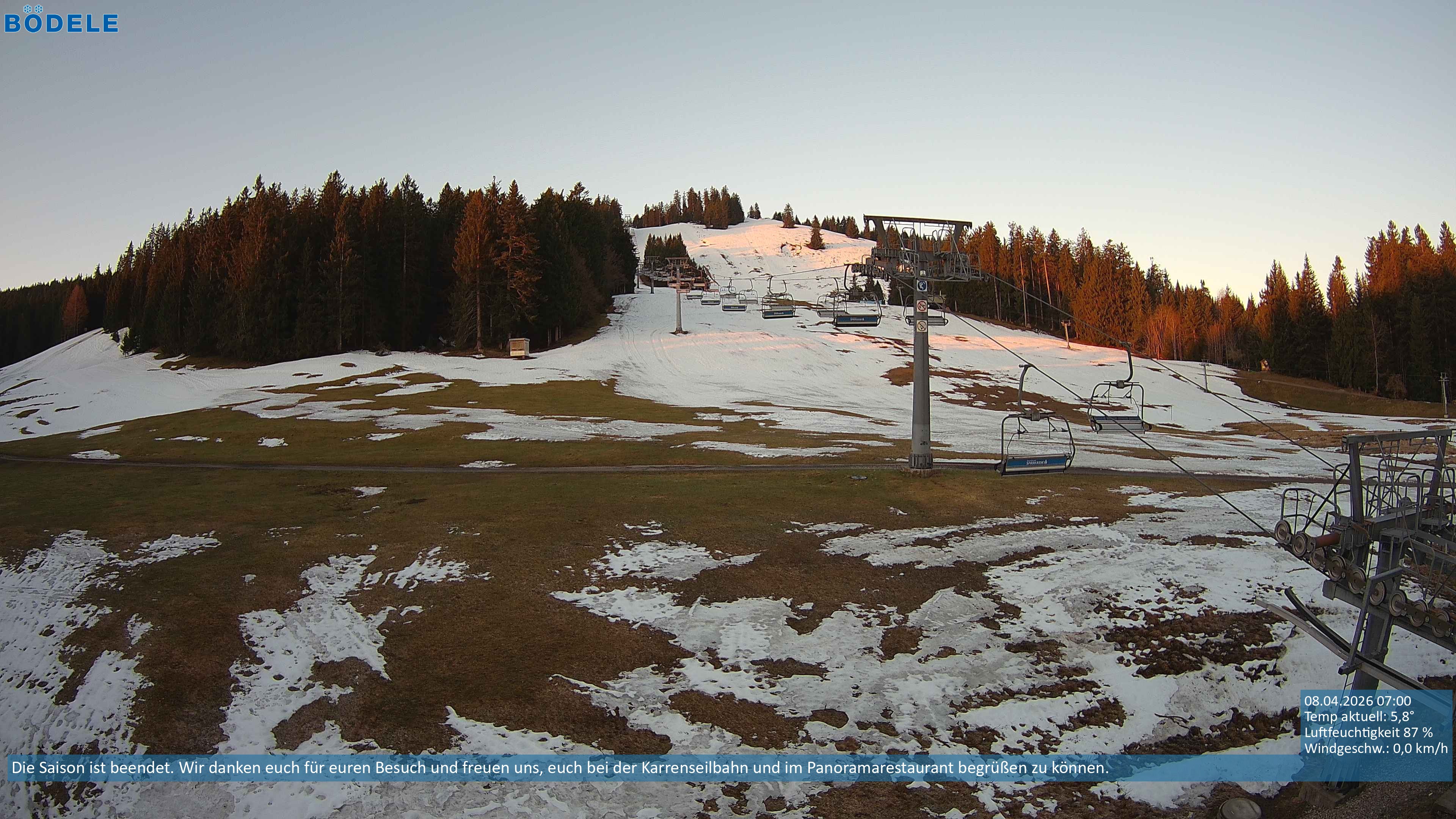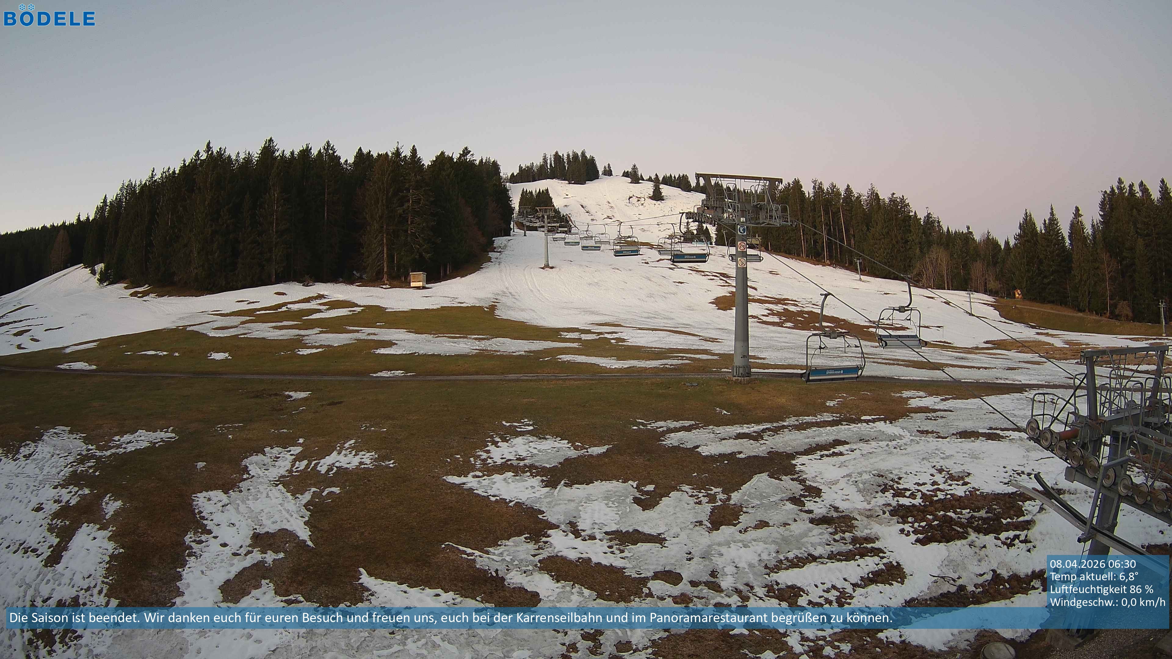 Archived webcam image showing Chair Lift Lank in Bödele ski resort on 8 Apr 2026 at 06:31 05:00
