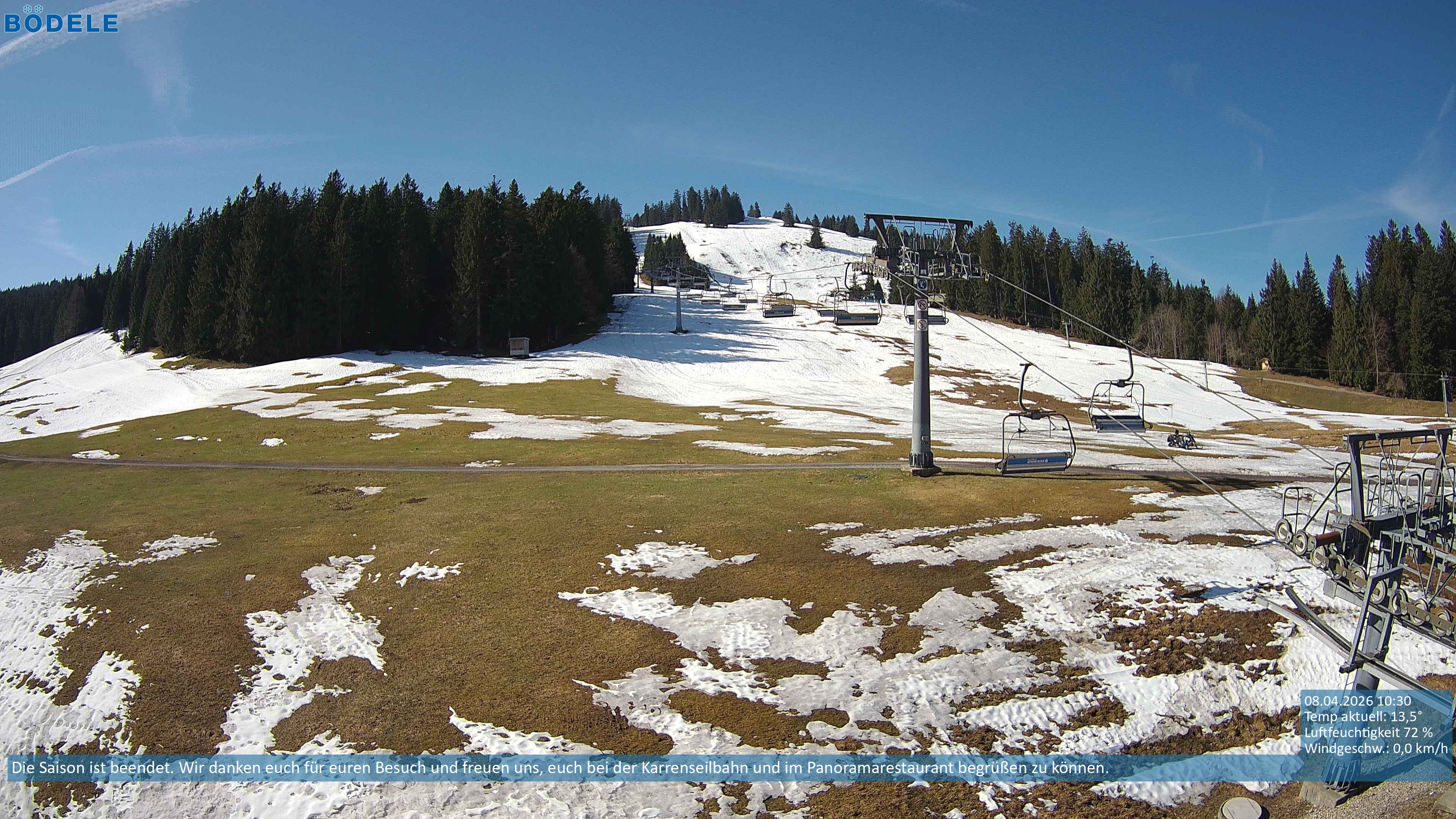 Archived webcam image showing Chair Lift Lank in Bödele ski resort on 8 Apr 2026 at 10:31 09:00