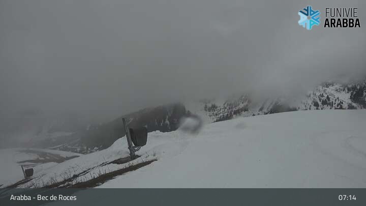 The webcam is located at the top station of the chairlift Arabba-Monte Burz in the ski resort of Arabba. You can see the mountain restaurant Rifugio Burz and the slopes at Le Pale chairlift.