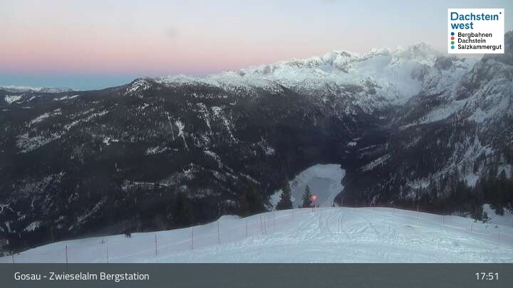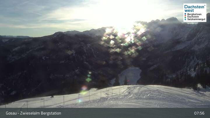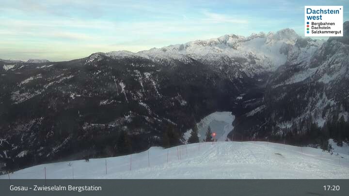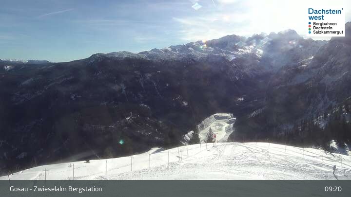 Located at Zwieselalm top station, this webcam shows the view of Törleck and Dachstein Glacier