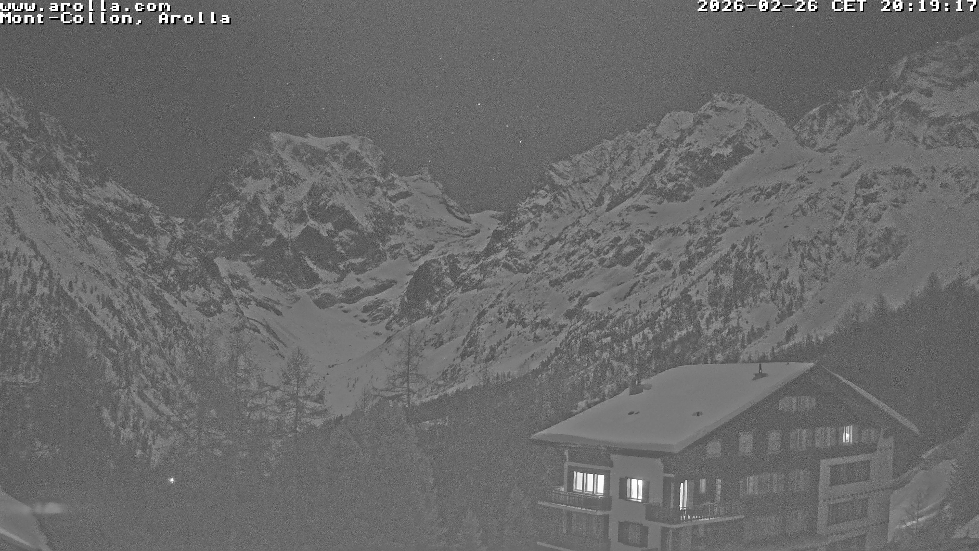 Archived webcam image showing Hotels Marmottes, Arolla on 26 Feb 2026 at 02:04 01:00