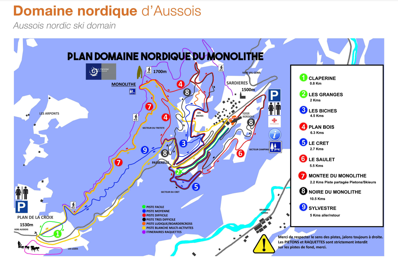 The parking lot of the cross-country ski center is located in the southeast of France, about two hours from Lyon, Turin and Geneva and less than 15 minutes from the exit of the highway No. 30. The entry point can be reached by car, by shuttle or in 15 minutes on foot (from the village in the direction of Sardières). There is a large parking lot at the central entry point to the trails.