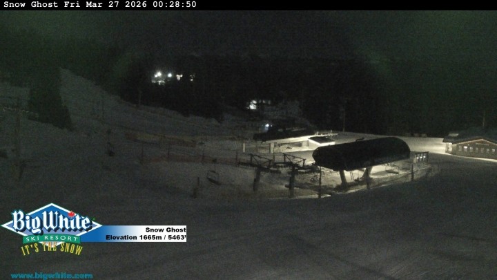 View towards the base station of the chairlift Snow Ghost Express - at the rightside Ridge Rocket Express can be spotted