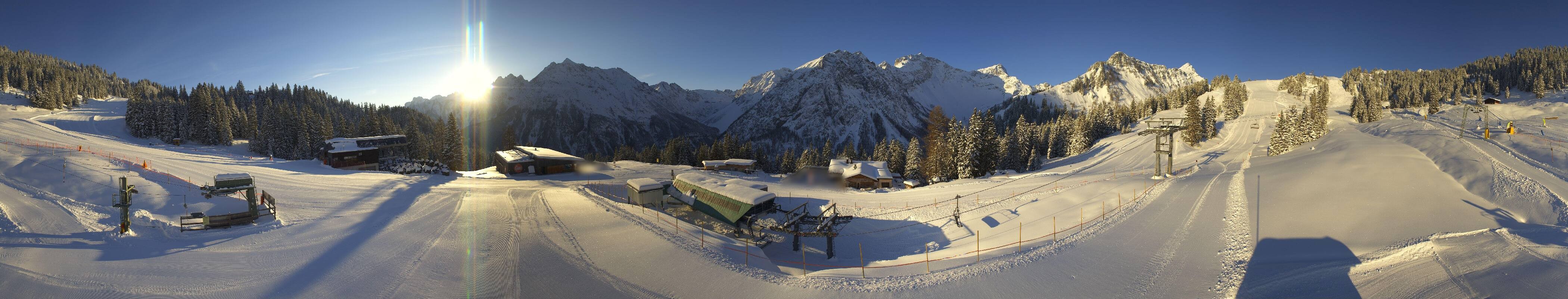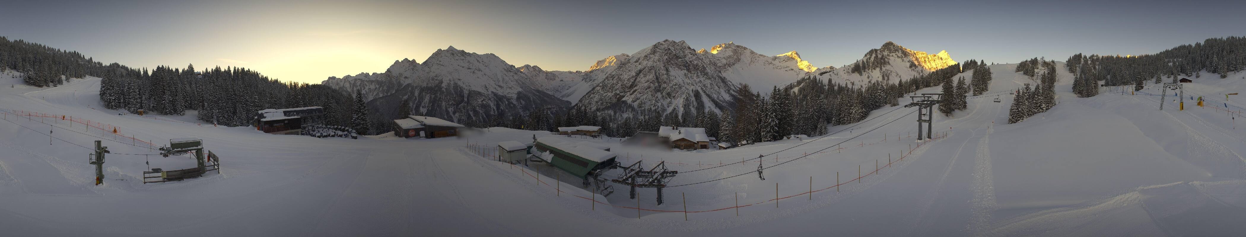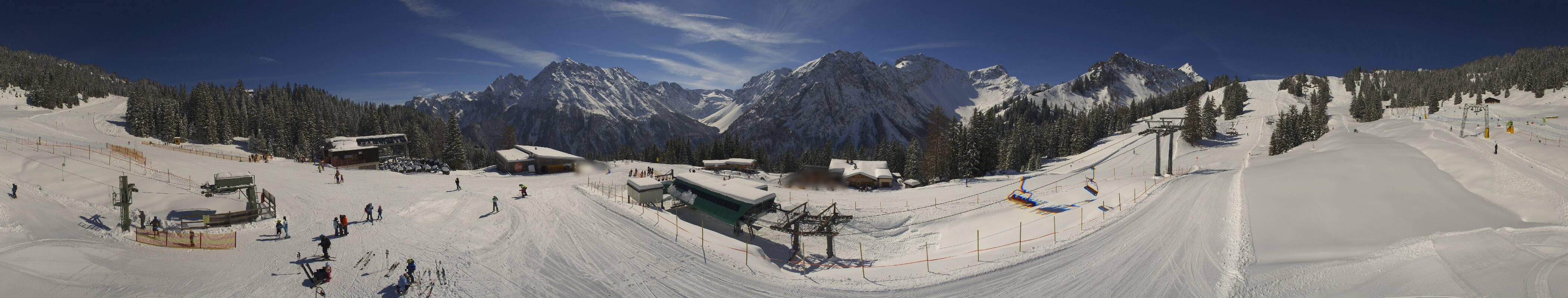 The webcam is located at the top station of the Palüd gondola in the Brandnertal ski area. You can also see the two base stations of the Glattjoch chairlift and the Melkboden button lift.