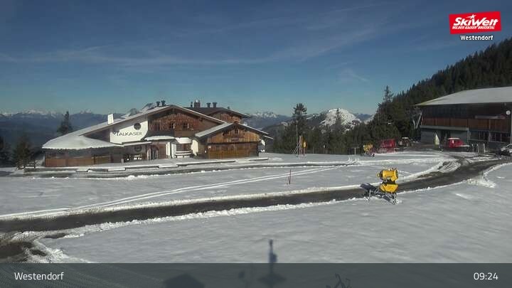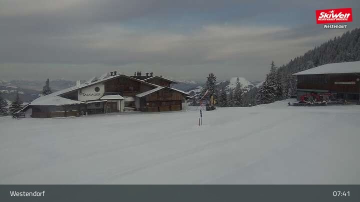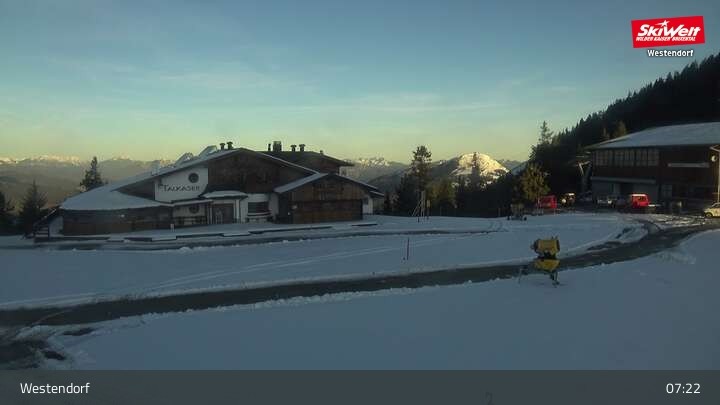 This webcam is located in Westendorf at SkiWelt Wilder Kaiser - Brixental. It shows parts of Talkaserbahn lift and the Talkaser run as well as restaurant Talkaser.