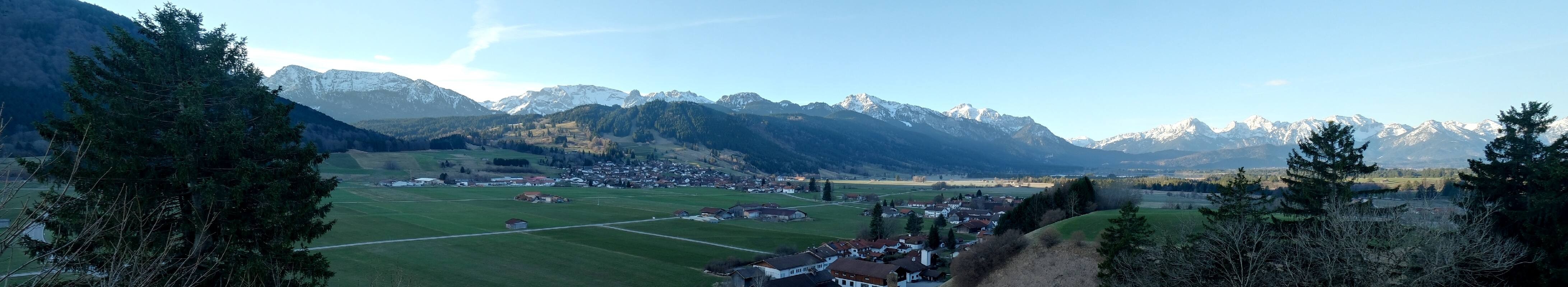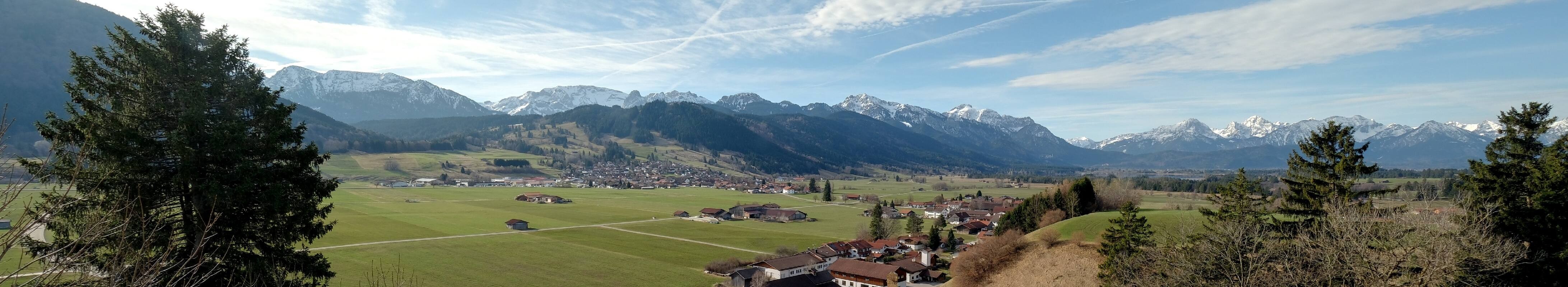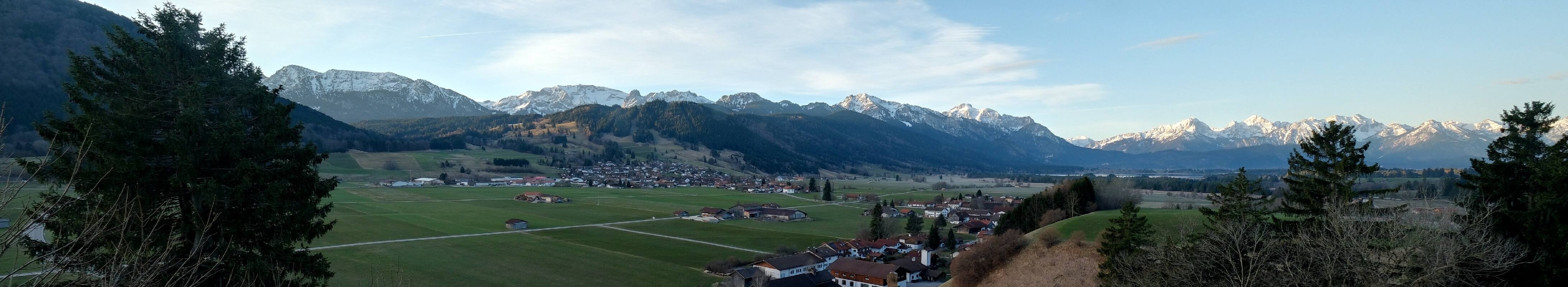 Enjoy the view from Berghof over Buching to the Buchenberg. If the view is good, you can also see the Bannwaldsee and Neuschwanstein Castle.