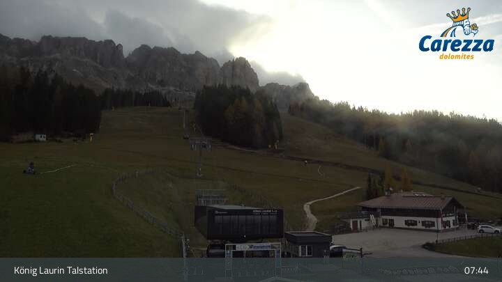 Webcam located at base station of chair lift King Laurin in Carezza ski resort.