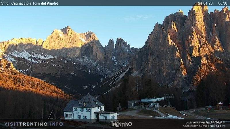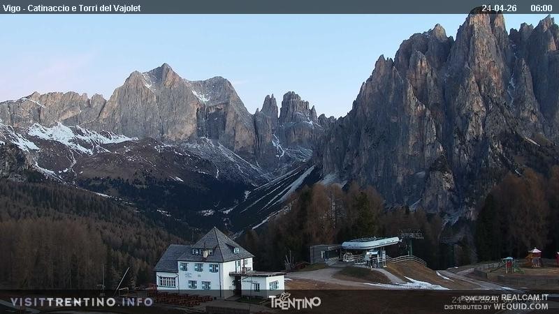 Archived webcam image showing Pozza di Fassa - Torri del Vajolet on 24 Apr 2026 at 06:36 05:00