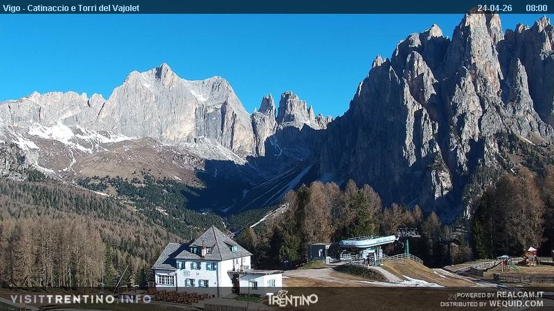 Archived webcam image showing Pozza di Fassa - Torri del Vajolet on 24 Apr 2026 at 08:36 07:00