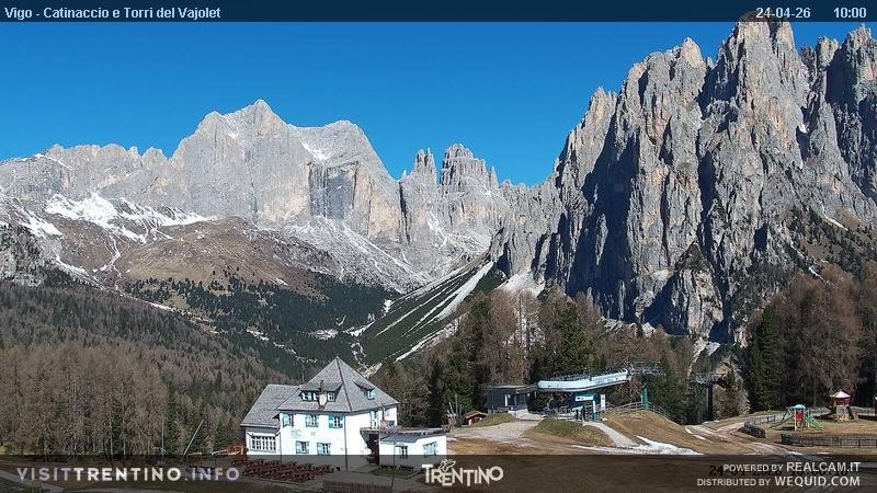 Archived webcam image showing Pozza di Fassa - Torri del Vajolet on 24 Apr 2026 at 10:36 09:00