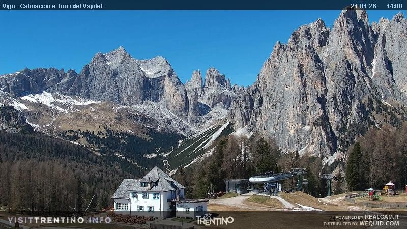 Archived webcam image showing Pozza di Fassa - Torri del Vajolet on 24 Apr 2026 at 14:36 13:00