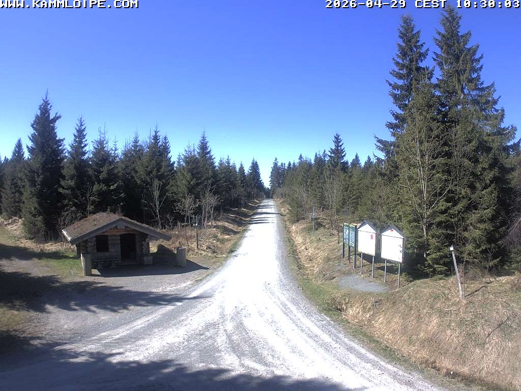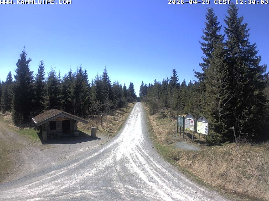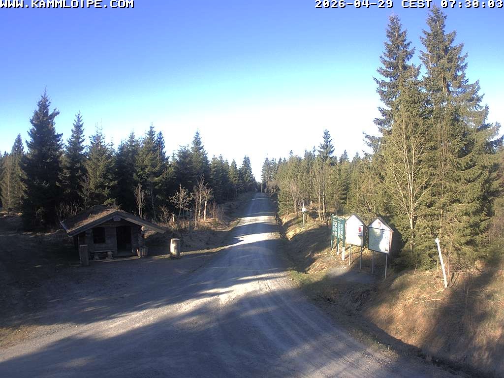 Located at the junction Butterweg/Mittelflügel, the webcam shows the cross-country ski trail Kammloipe between Johanngeorgenstadt and Weitersglashütte.