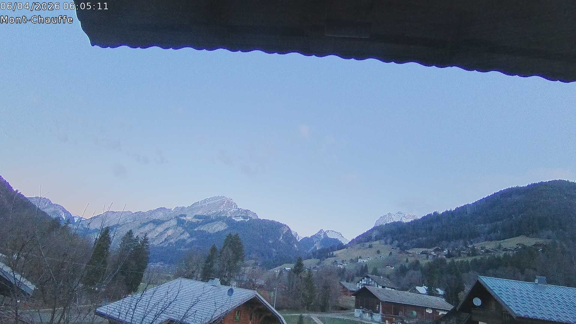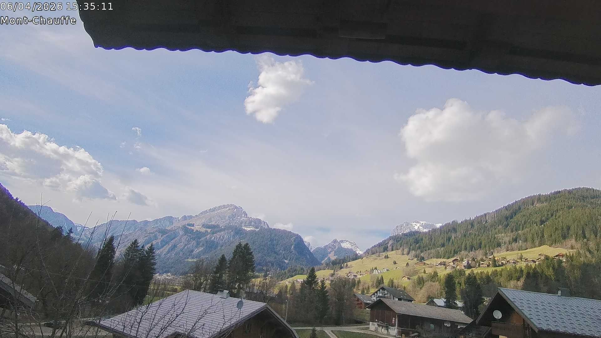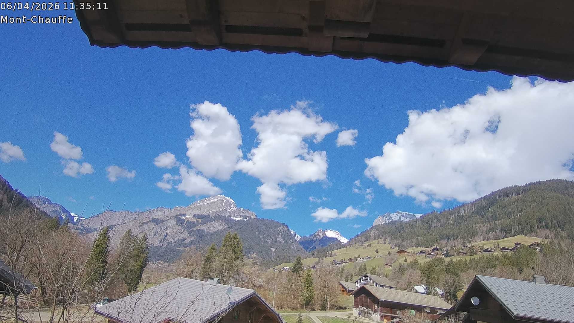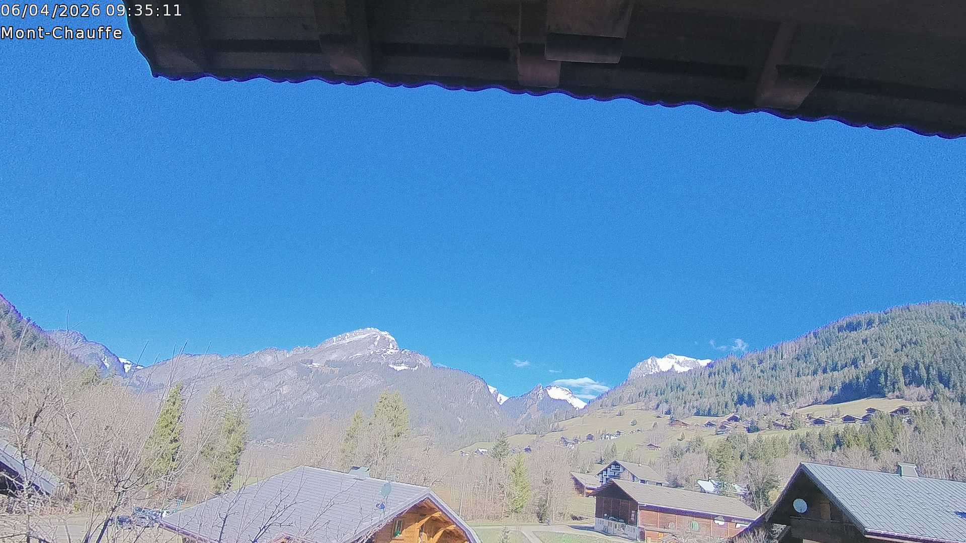 Situated in La Chapelle d´Abondance village the webcam shows the mountains Mont Chauffé and Les Cornettes de Bise in the background.