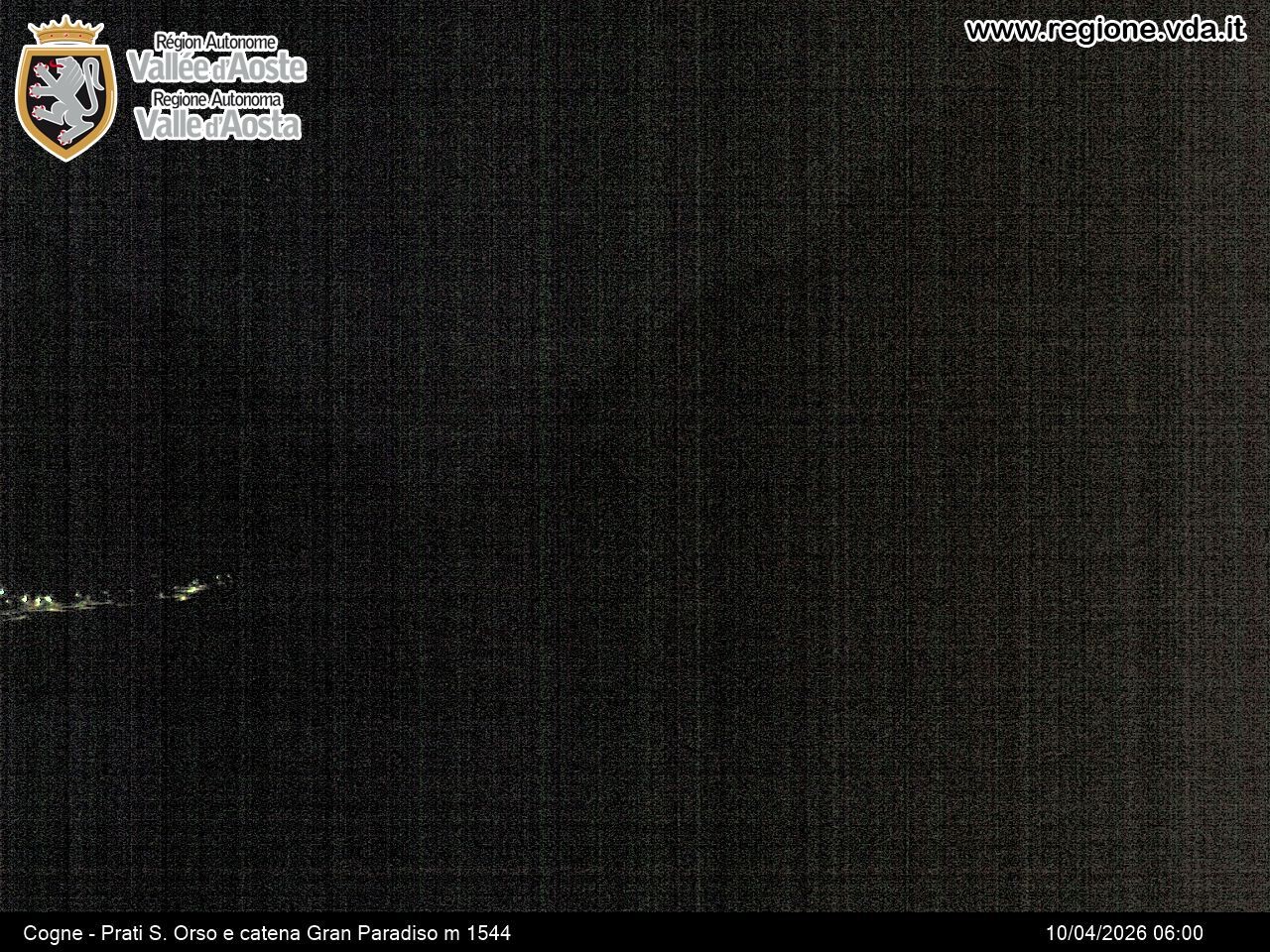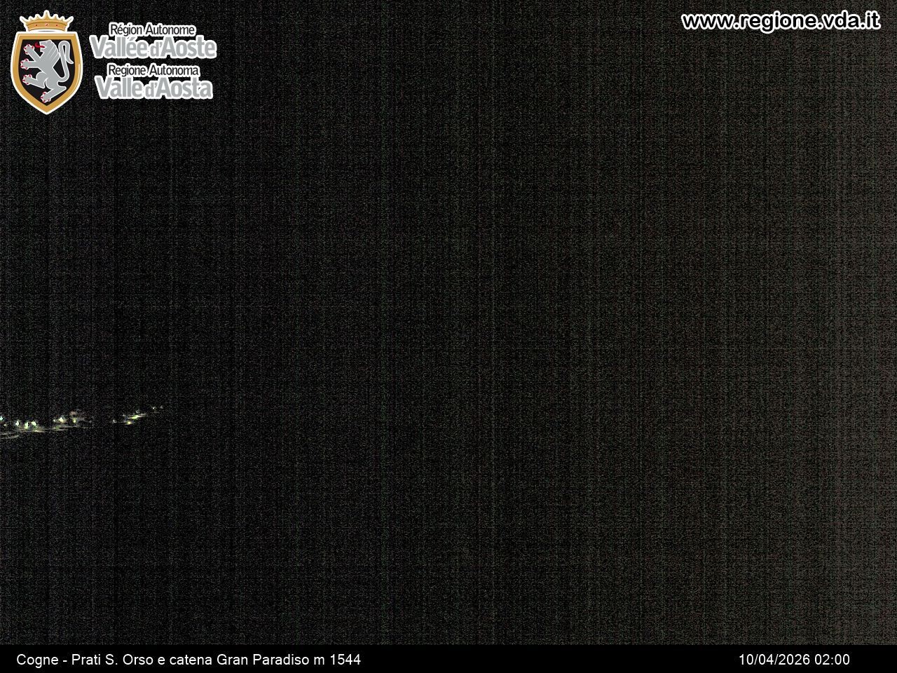 Archived webcam image showing Cogne Gran Paradiso View over the valley on 10 Apr 2026 at 02:00 01:00