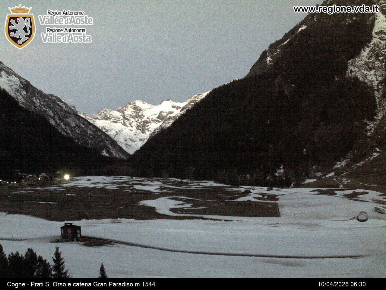 Archived webcam image showing Cogne Gran Paradiso View over the valley on 10 Apr 2026 at 06:00 05:00