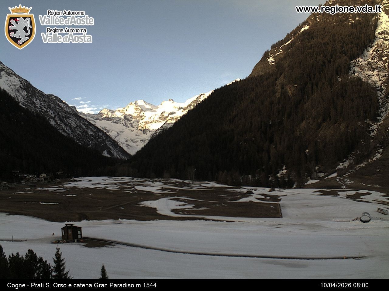 Archived webcam image showing Cogne Gran Paradiso View over the valley on 10 Apr 2026 at 08:00 Latest