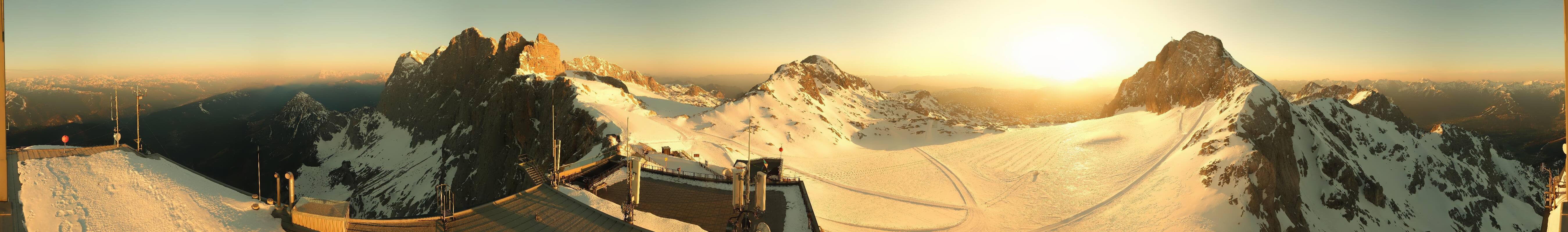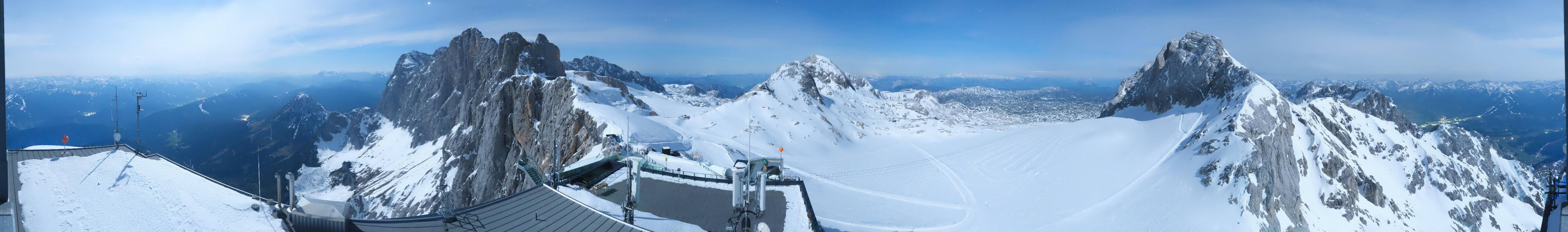 Archived webcam image showing Panoramic view over the Dachstein Glacier on 27 Apr 2026 at 04:28 03:00