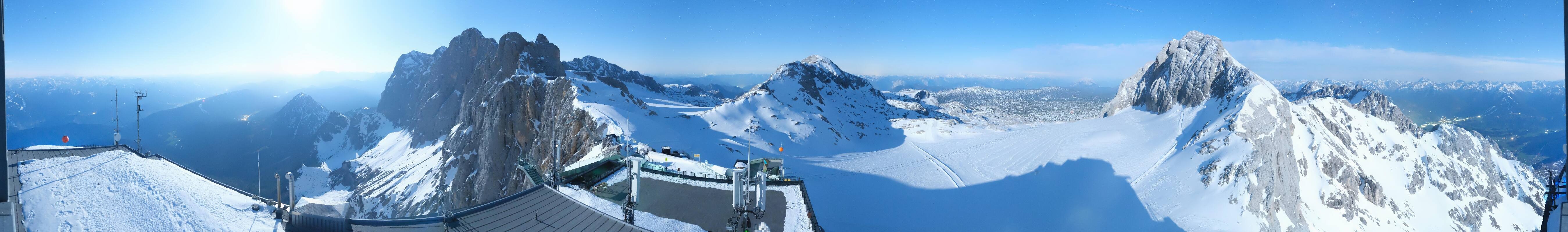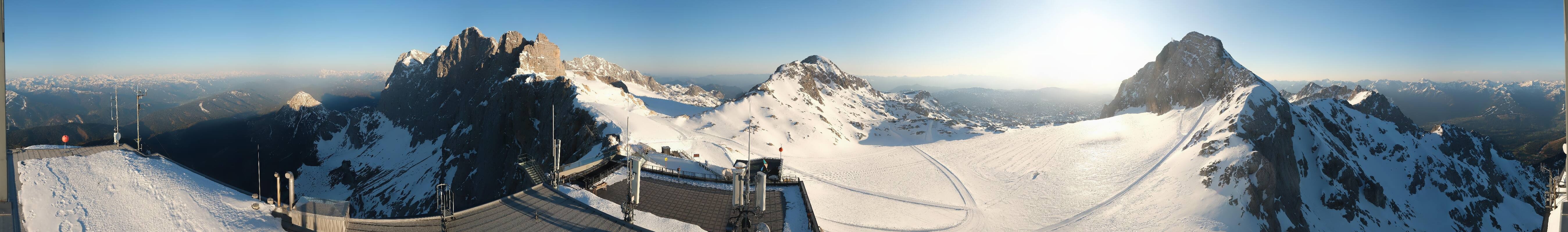 Archived webcam image showing Panoramic view over the Dachstein Glacier on 27 Apr 2026 at 06:28 05:00
