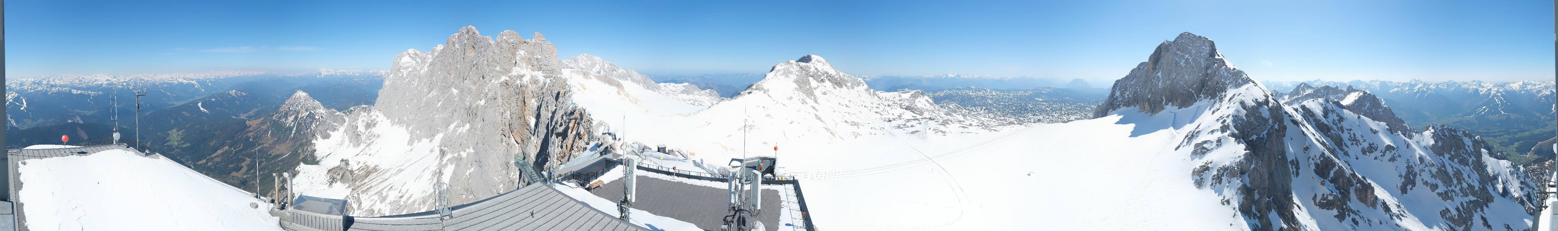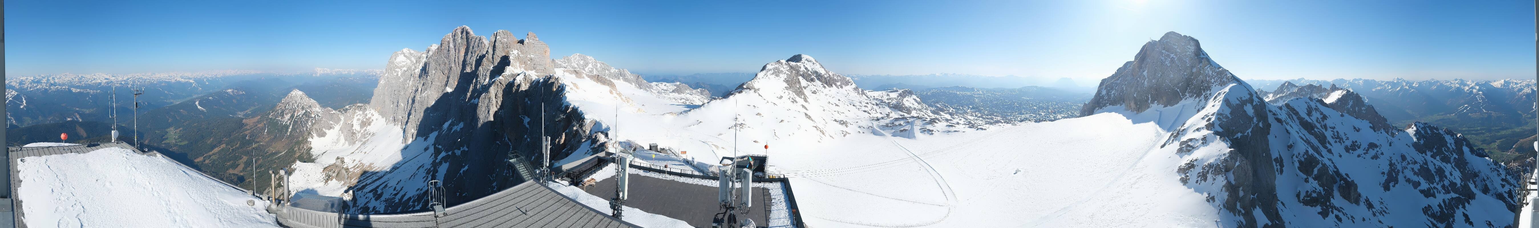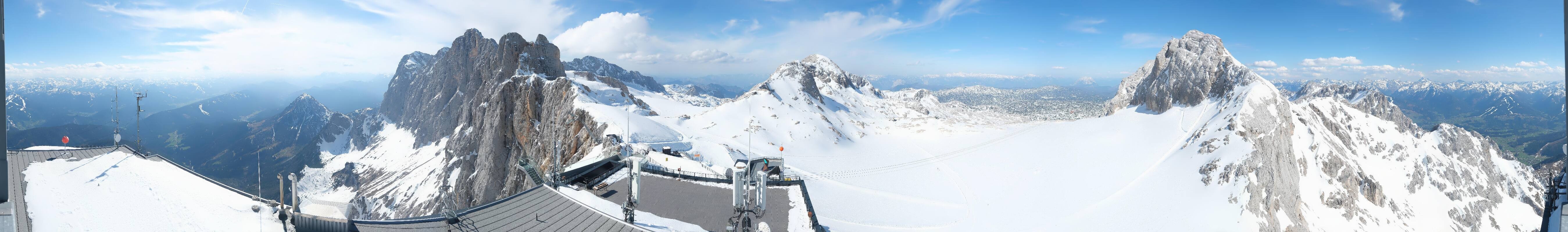 Archived webcam image showing Panoramic view over the Dachstein Glacier on 27 Apr 2026 at 10:28 09:00