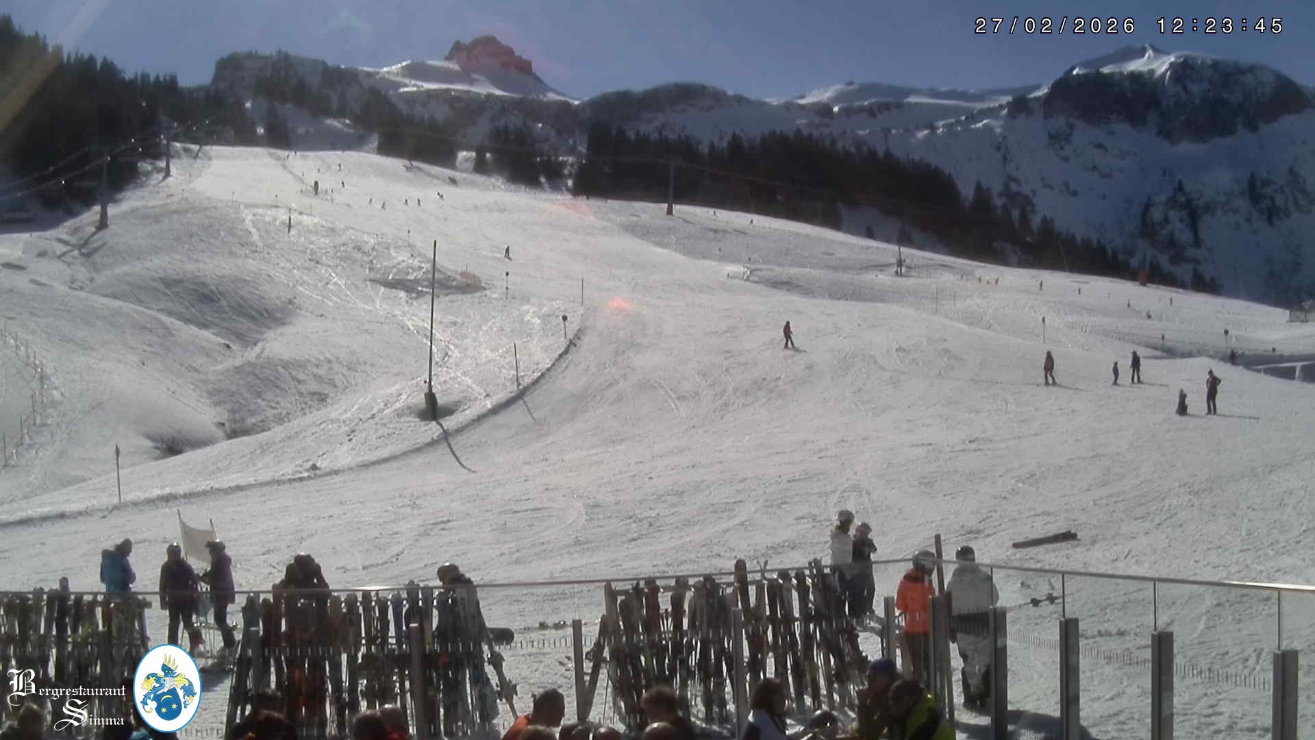 Archived webcam image showing Mellau - View from the mountain restaurant Simma on 26 Feb 2026 at 14:13 13:00