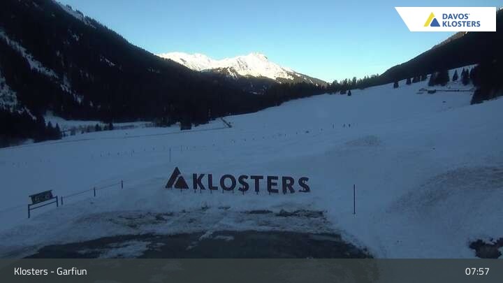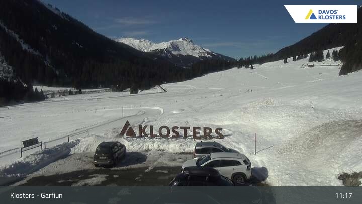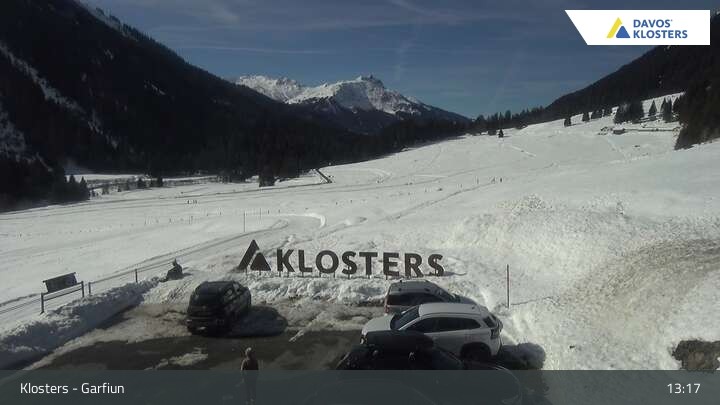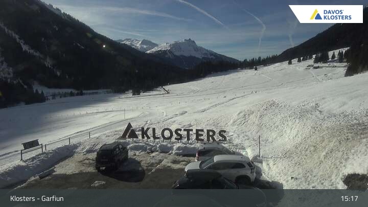 View of the mountain restaurant Alp Garfiun in Klosters. Skiers and snowboarders enjoy regional specialities before heading back onto the slopes of Davos - Klosters.