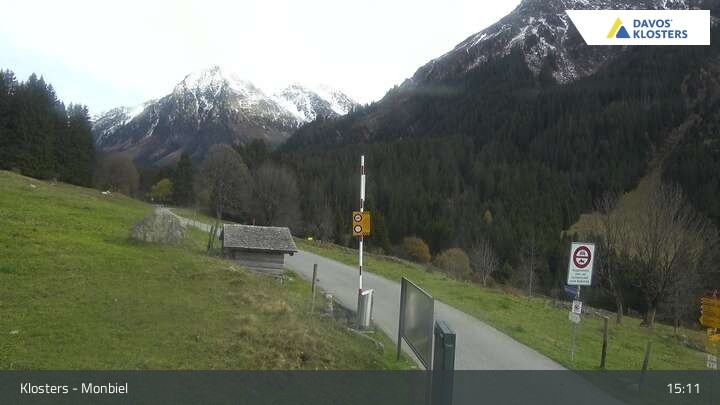 This webcam is located at the car park in Monbiel near Klosters. It looks upon the surrounding Alps, where the Davos - Klosters ski area boasts numerous opportunities for winter sports.