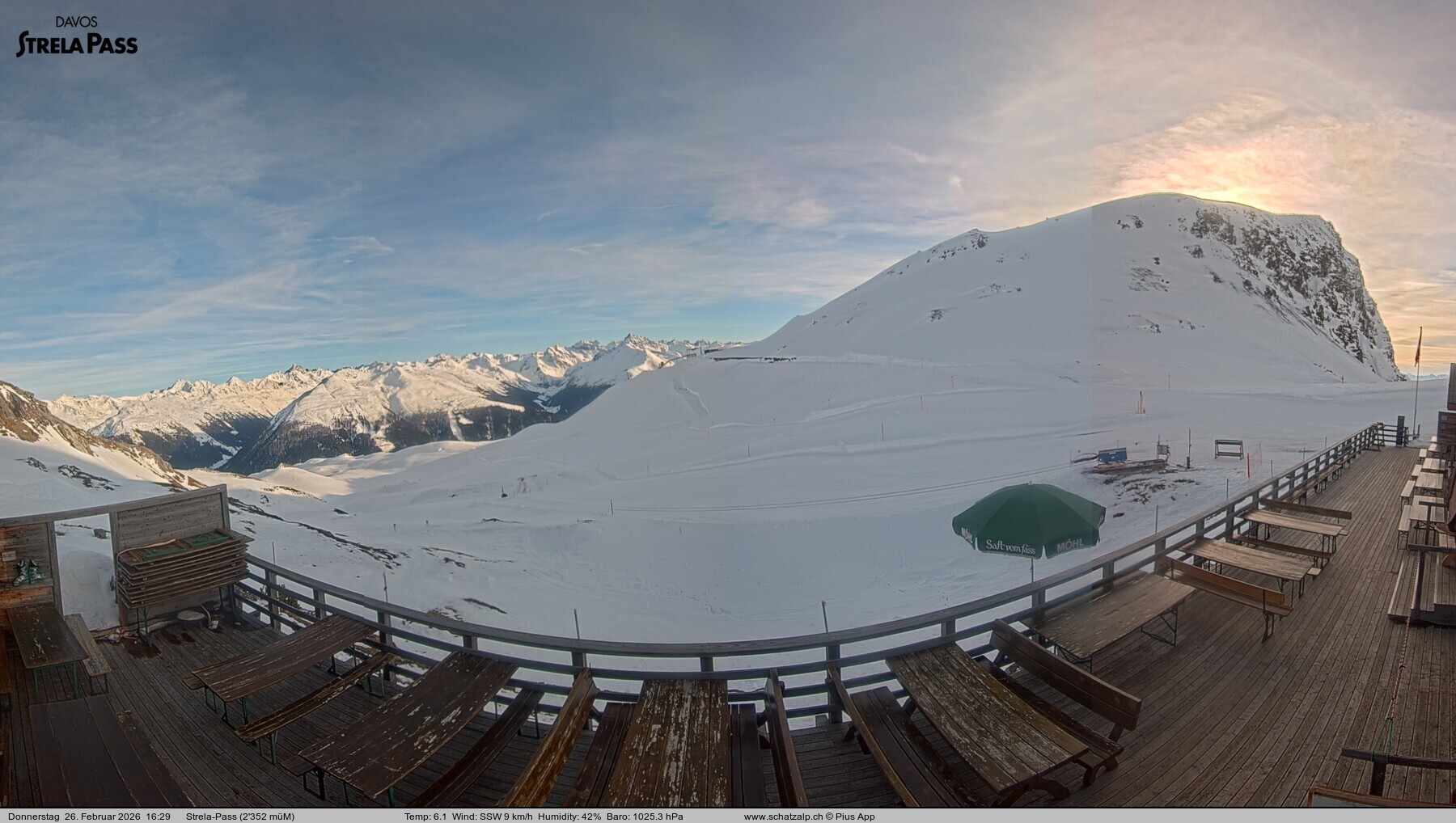 Archived webcam image showing Schatzalp - Strela Ski Resort on 26 Feb 2026 at 16:36 Latest