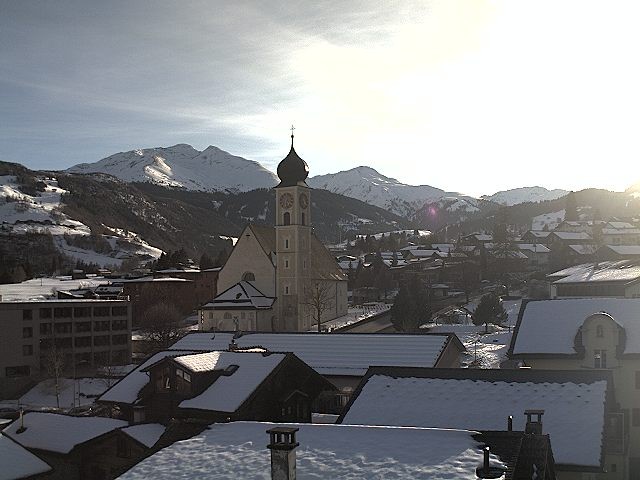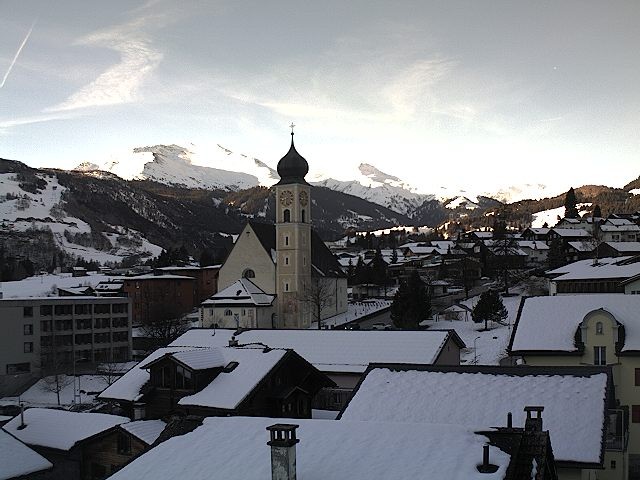 Archived webcam image showing church of Disentis on 26 Feb 2026 at 16:36 Latest