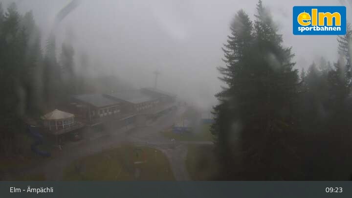 This webcam looks upon the mountain restaurant Ämpächli in Elm. Hungry skiers come here to take a break and enjoy the pasta station, salad bar and more. Right next to the restaurant you can find a practice area for kids.