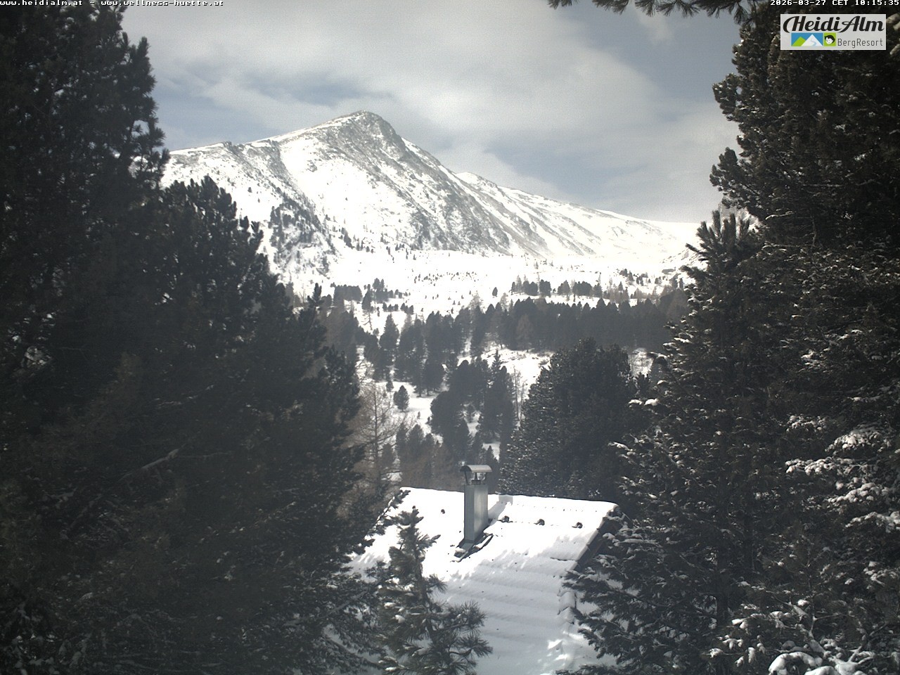Archived webcam image showing Sun deck Wellness Hütte Heidialm at Falkert on 27 Mar 2026 at 10:41 09:00