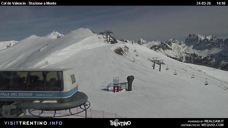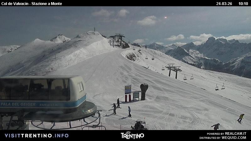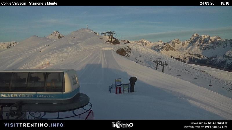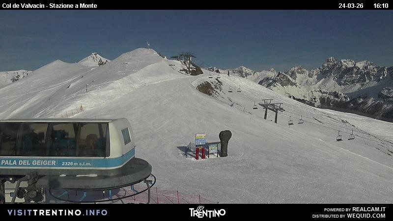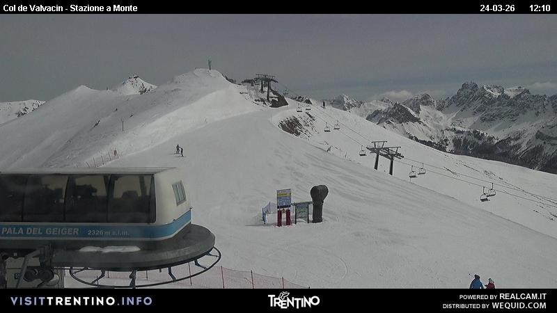 The webcam shows the top station of Col de Valvacin chair lift and the start of the run Valvacin in the ski area Possa di Fassa-Buffaure.