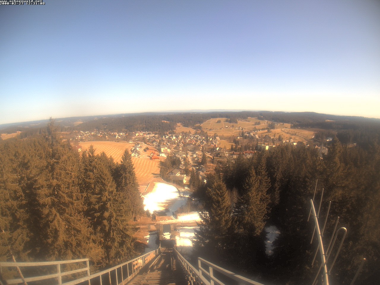 The webcam is located at the historic "Adlerschanze" and shows the village Schoenwald, Black Forest.