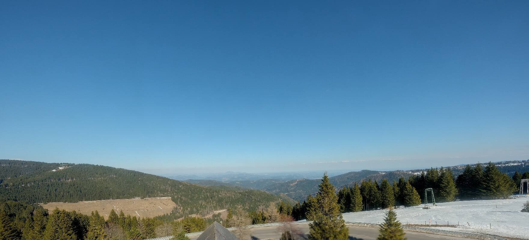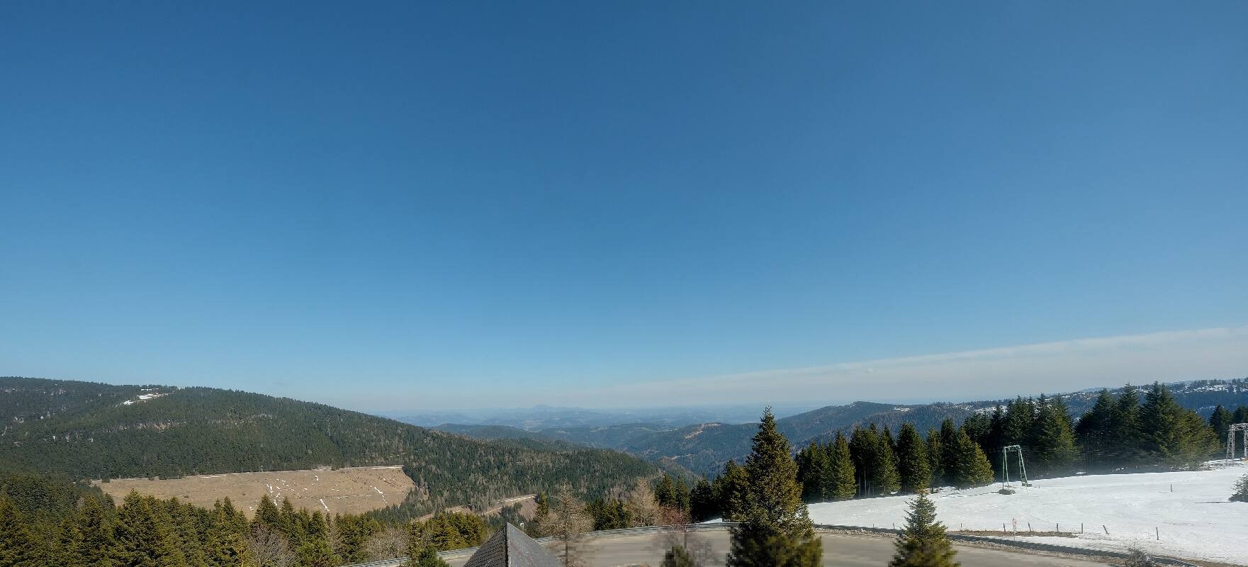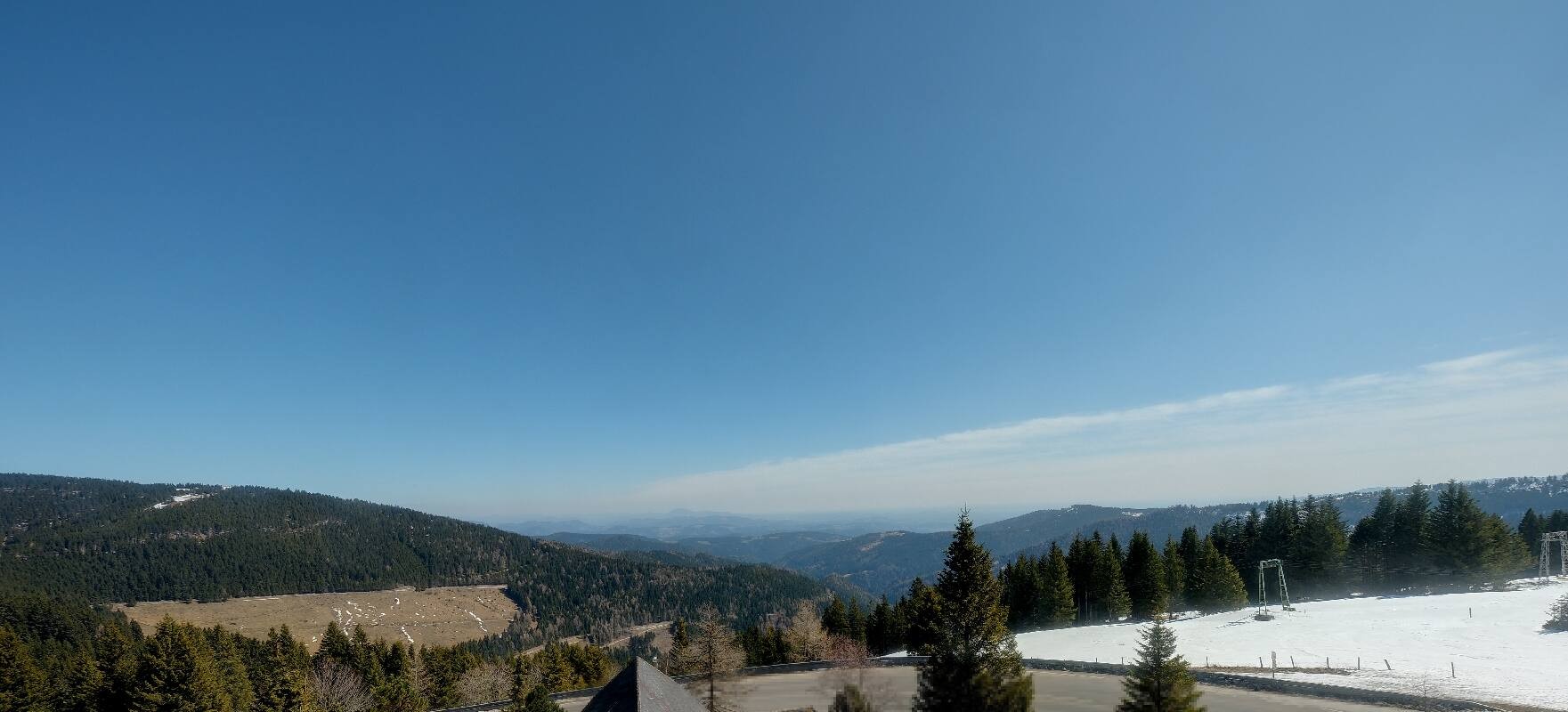 Panoramic view from Gaberlhaus on Stubalm. The camera looks east to the lifts of the small ski resort Gaberl.