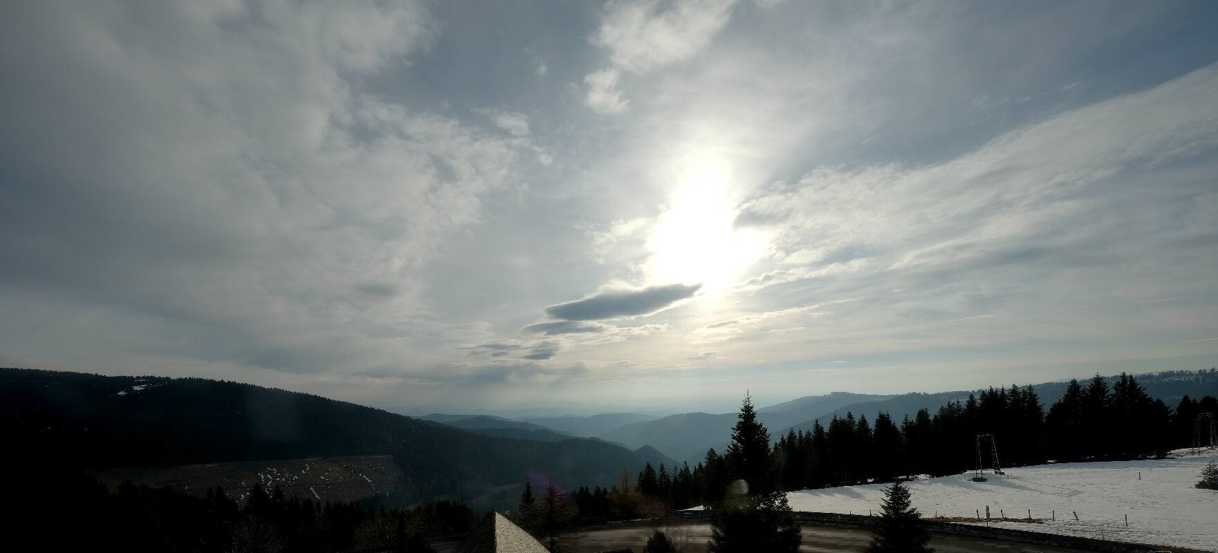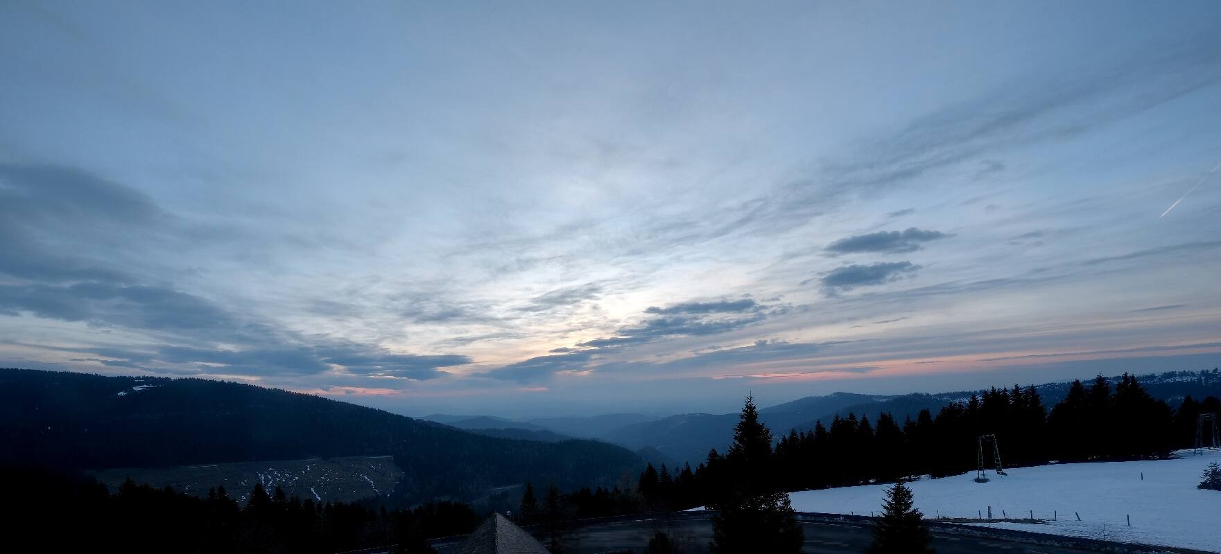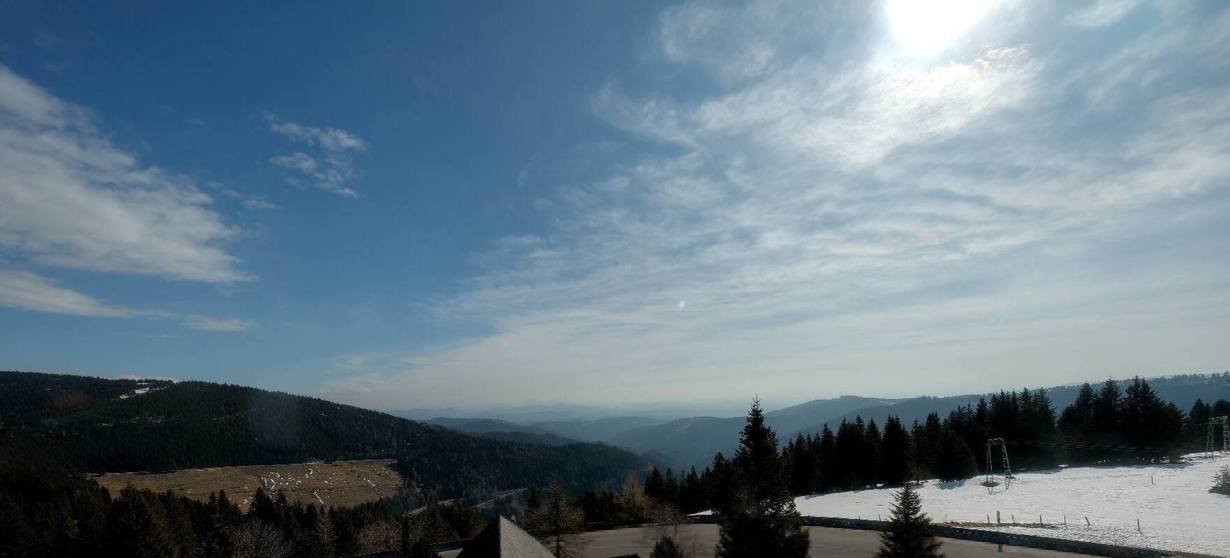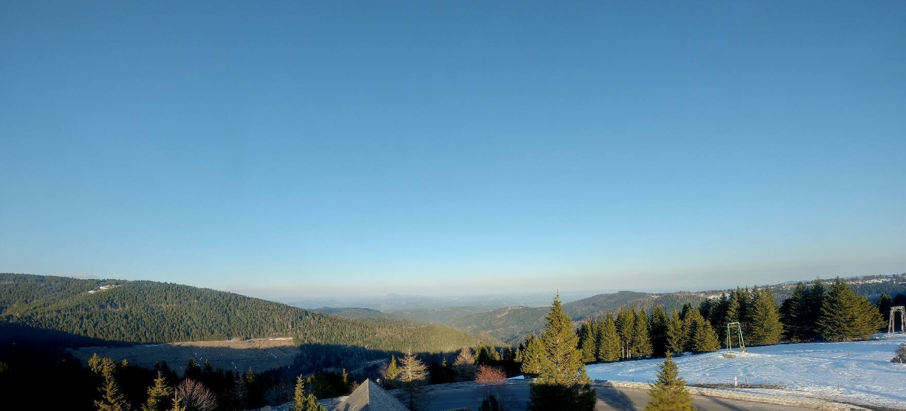 Panoramic view from Gaberlhaus on Stubalm. The camera looks east to the lifts of the small ski resort Gaberl.