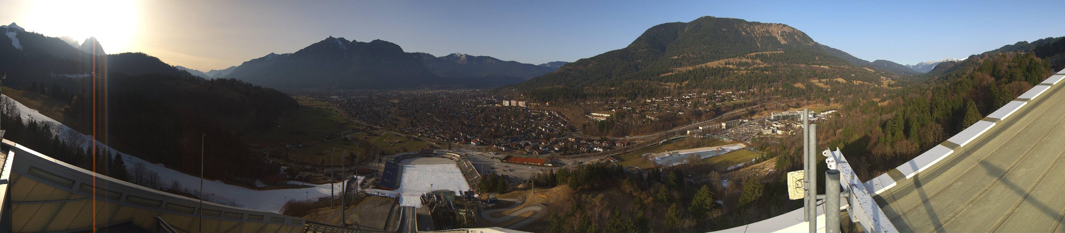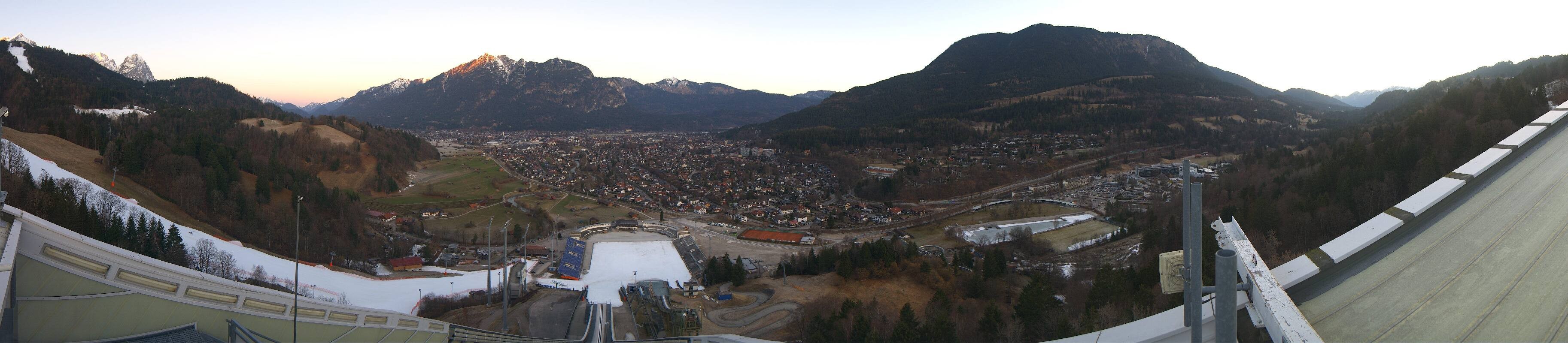 Archived webcam image showing Garmisch-Partenkirchen - Great Olympic Hill of the ski stadium on 5 Mar 2026 at 08:22 07:00