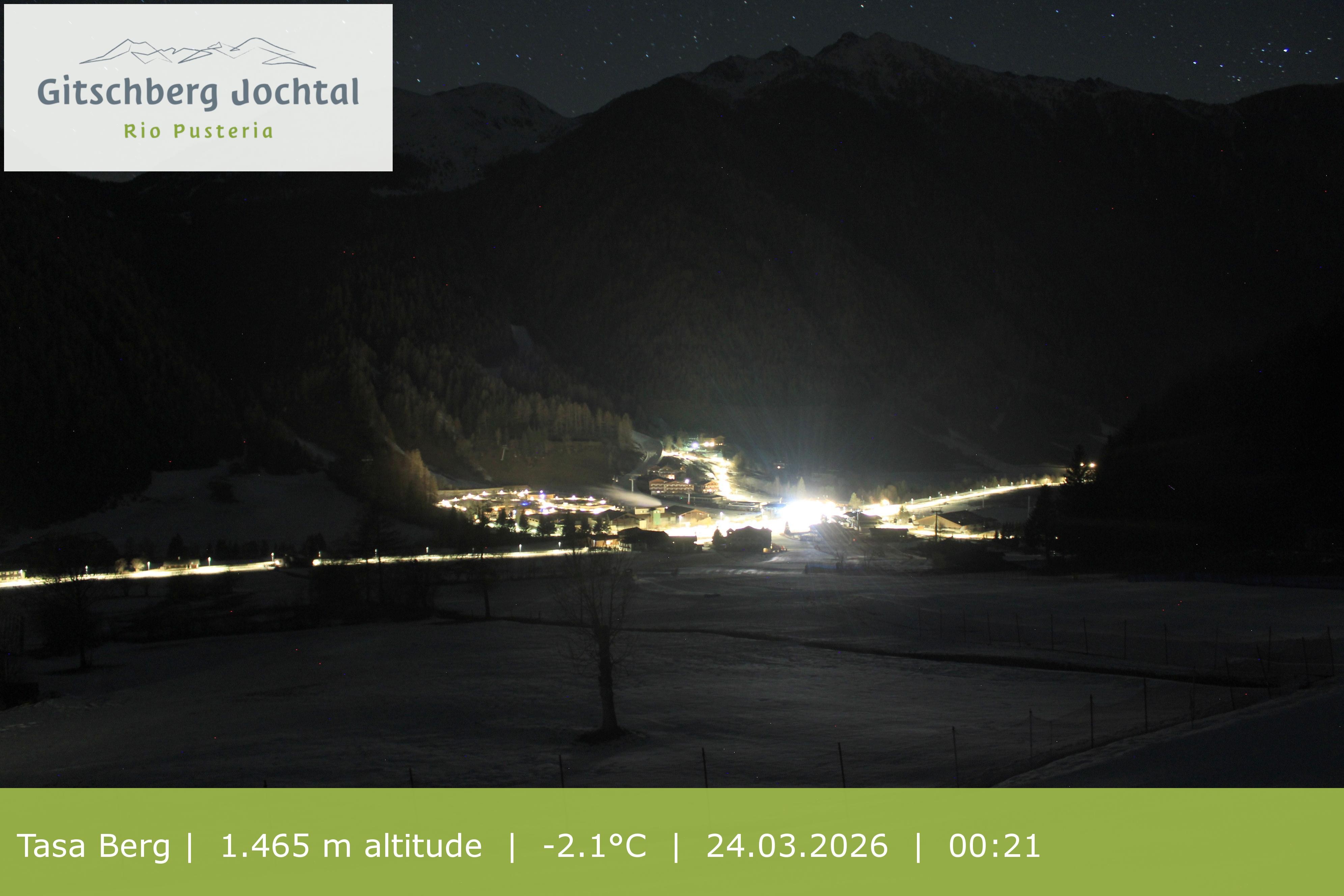 Archived webcam image showing Webcam Gitschberg Jochtal: View at Schilling Liftside on 24 Mar 2026 at 00:36 23:00