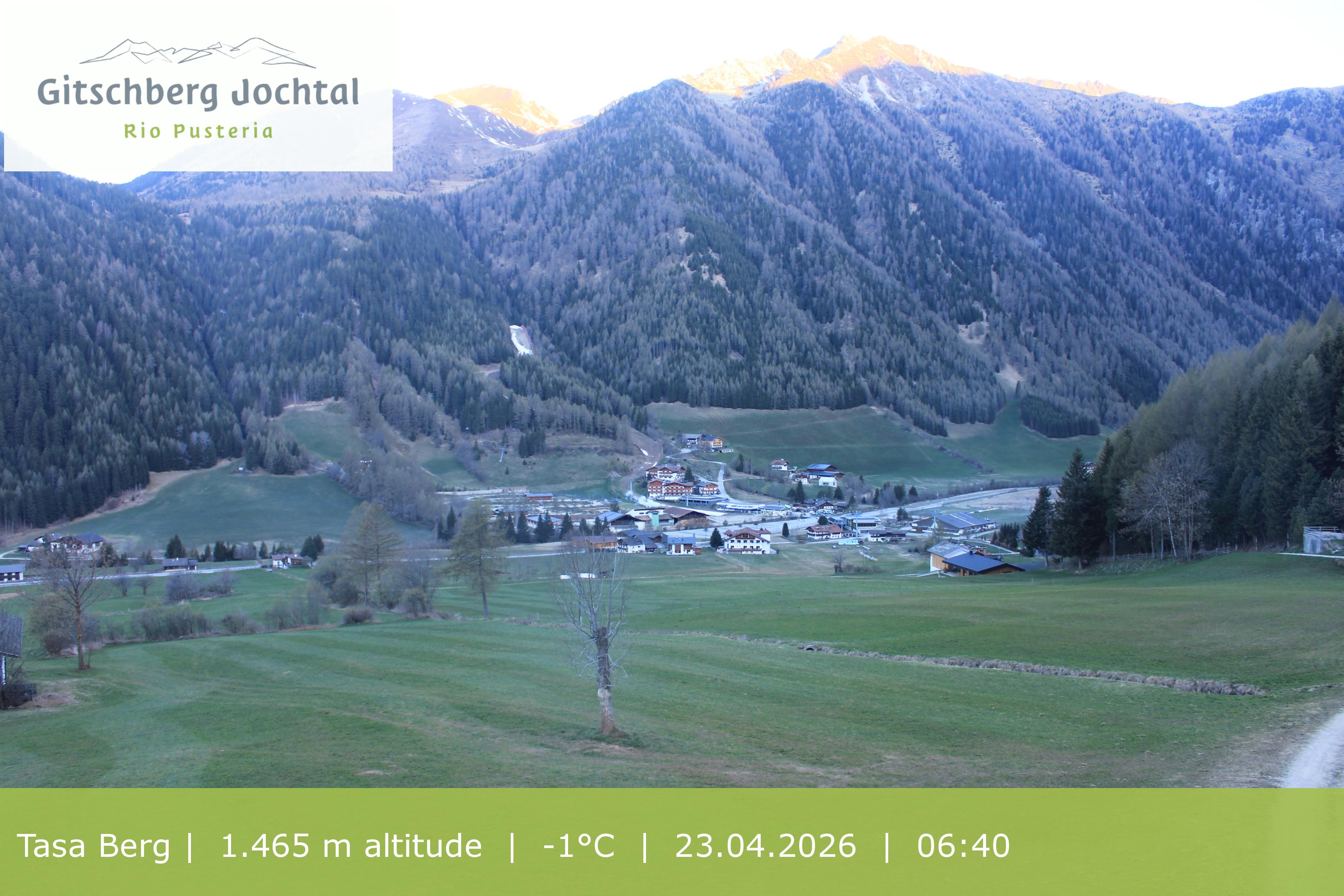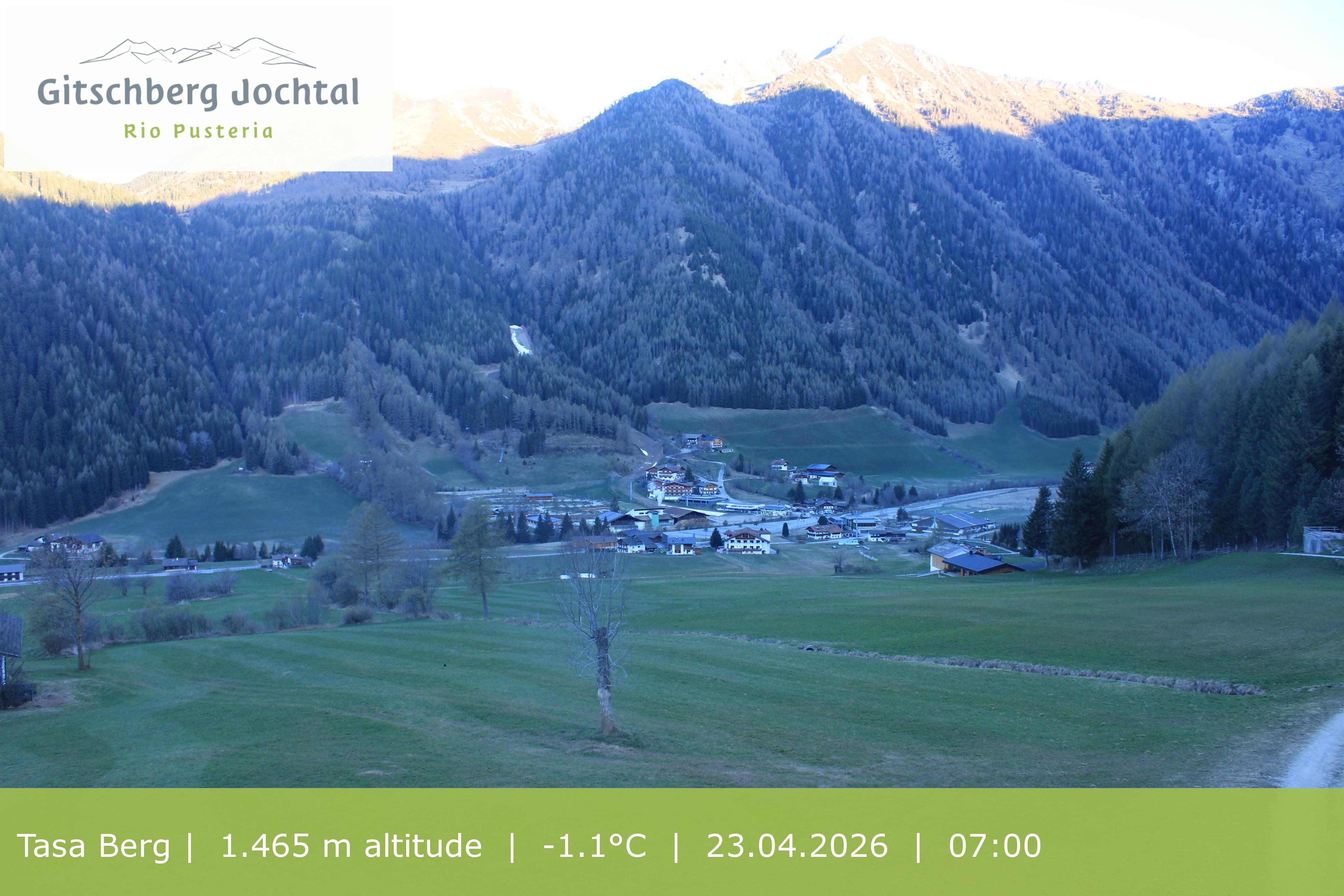 Archived webcam image showing Webcam Gitschberg Jochtal: View at Schilling Liftside on 23 Apr 2026 at 06:54 05:00