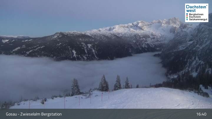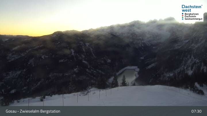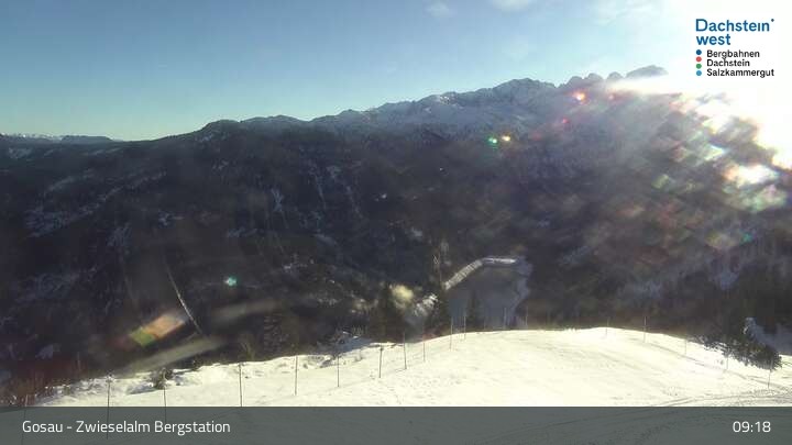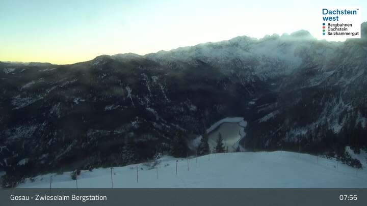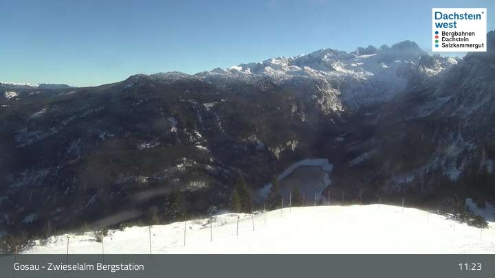 Located at Zwieselalm top station, this webcam shows the view of Törleck and Dachstein Glacier