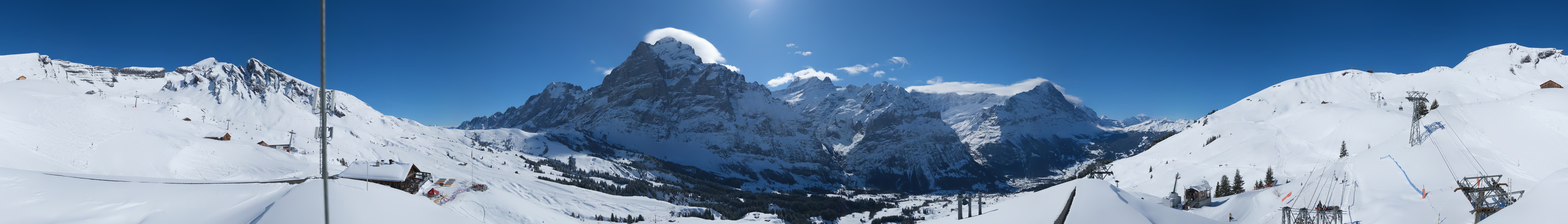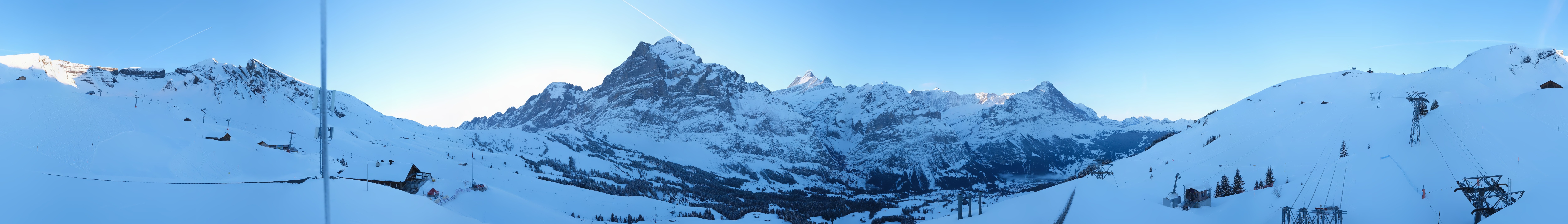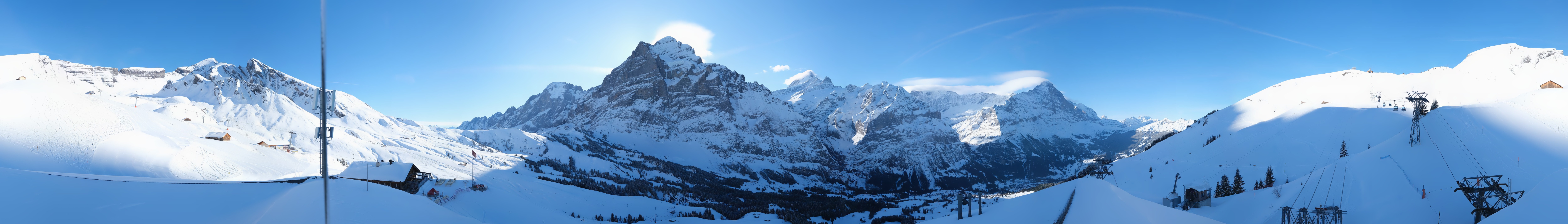 This webcam is located at the midway station of the gondola from Grindelwald to the top of the First. You can see the iconic 4078 meter SAchreckhorn.