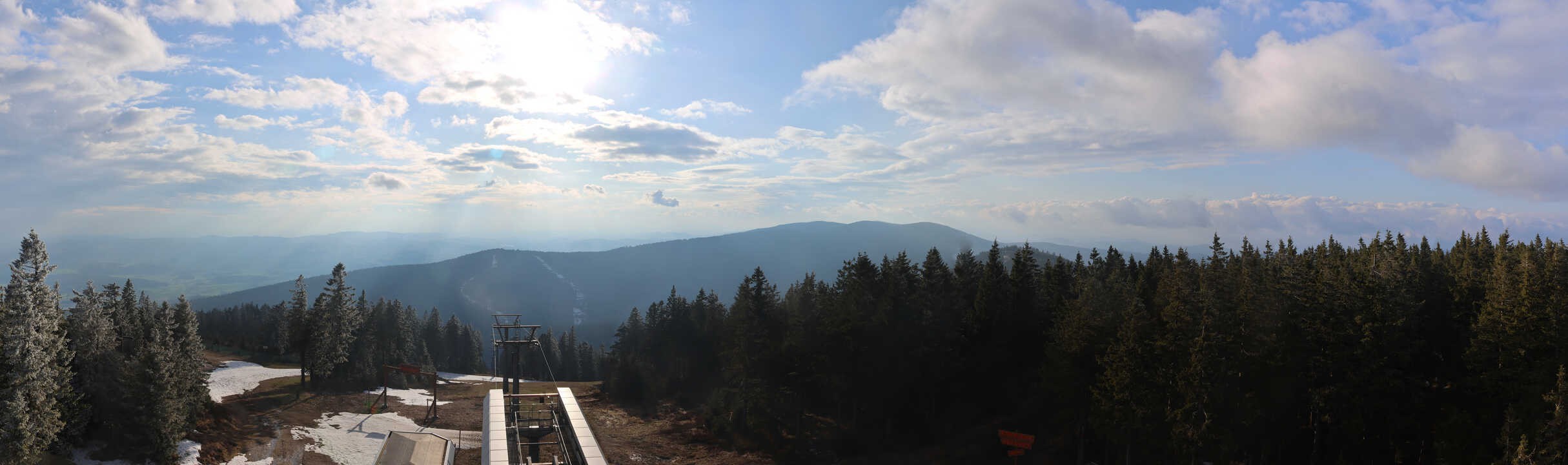 Panorama view from the top of the Hochficht-Chair over the Bohemian Forest.